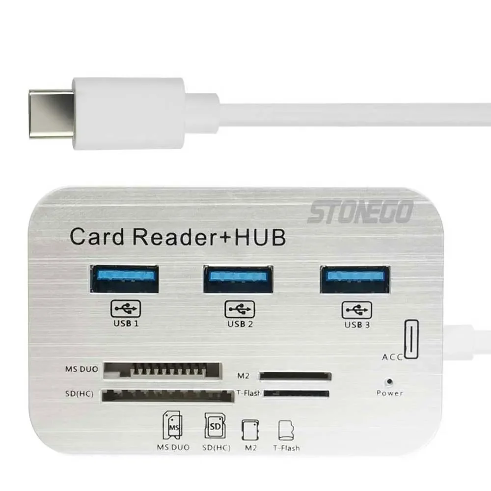 -El concentrador STONEGO USB C incluye 3 puertos USB 3,0, 1 ranura para tarjeta SD TF, 1 ranura para tarjeta SD, 1 ranura para tarjeta M2, 1 ranura para tarjeta MS. Le permite conectar un teclado, ratón, controlador USB, disco externo a un portátil y PC. Satisfaga todas sus necesidades a la vez.