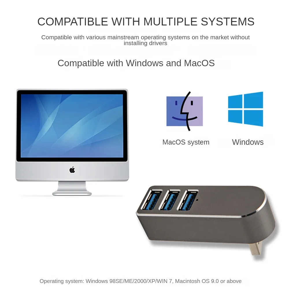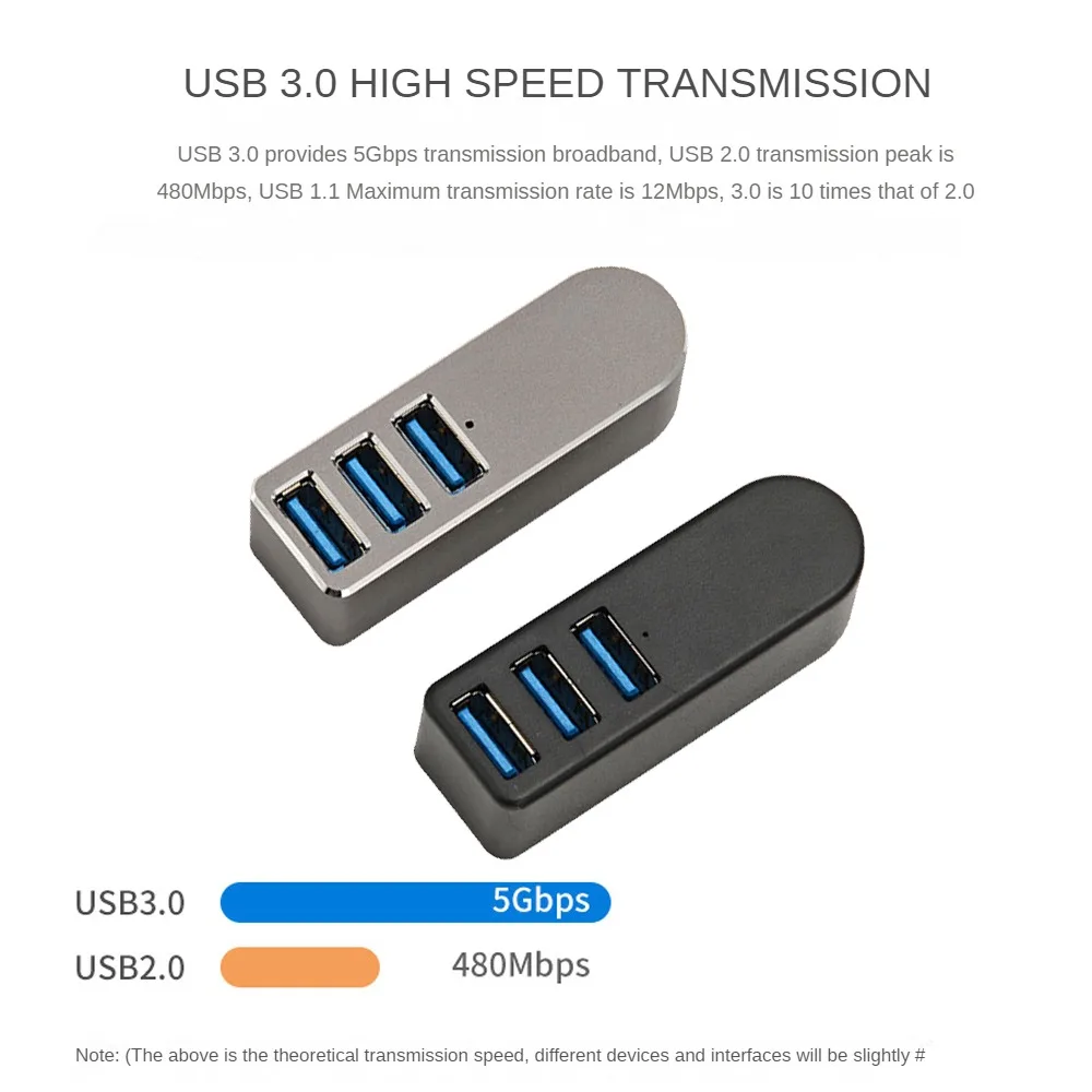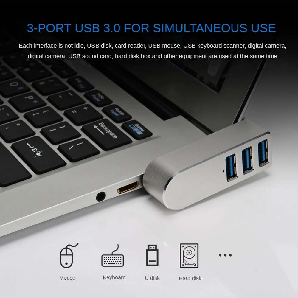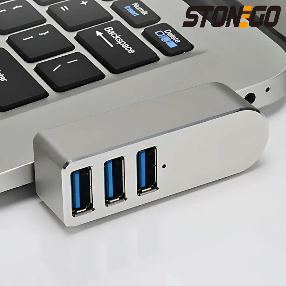 Comprar STONEGO-Mini Hub USB 3,0 de aleación de aluminio, interfaz de alta velocidad, 3 puertos, adecuado para PC, portátil, teléfono móvil, lector de disco U