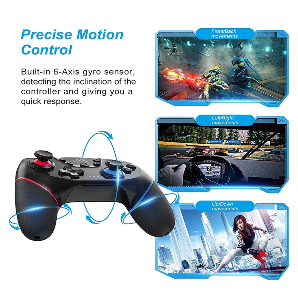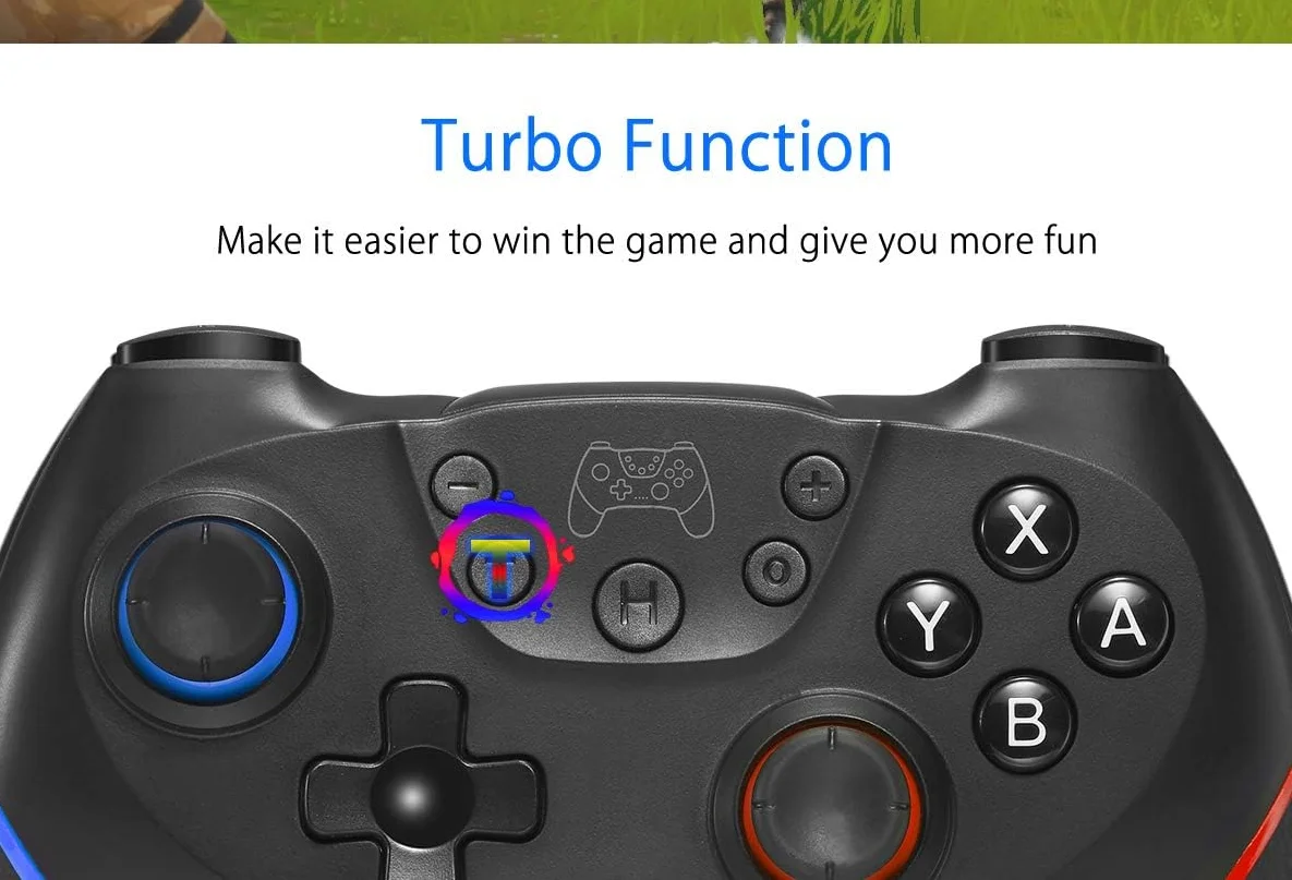 Este producto es un GamePad inalámbrico Bluetooth, TURBO incorporado, función AUTO y vibración, fácil de usar y altamente performant. Este joystick garantiza la precisión y la experiencia de juego innovadora. Tiene un diseño ergonómico y minimalista con características performant que le ayudan a disfrutar más del juego. LT se puede utilizar para N-Sl y apoya la PC con el cable del USB.