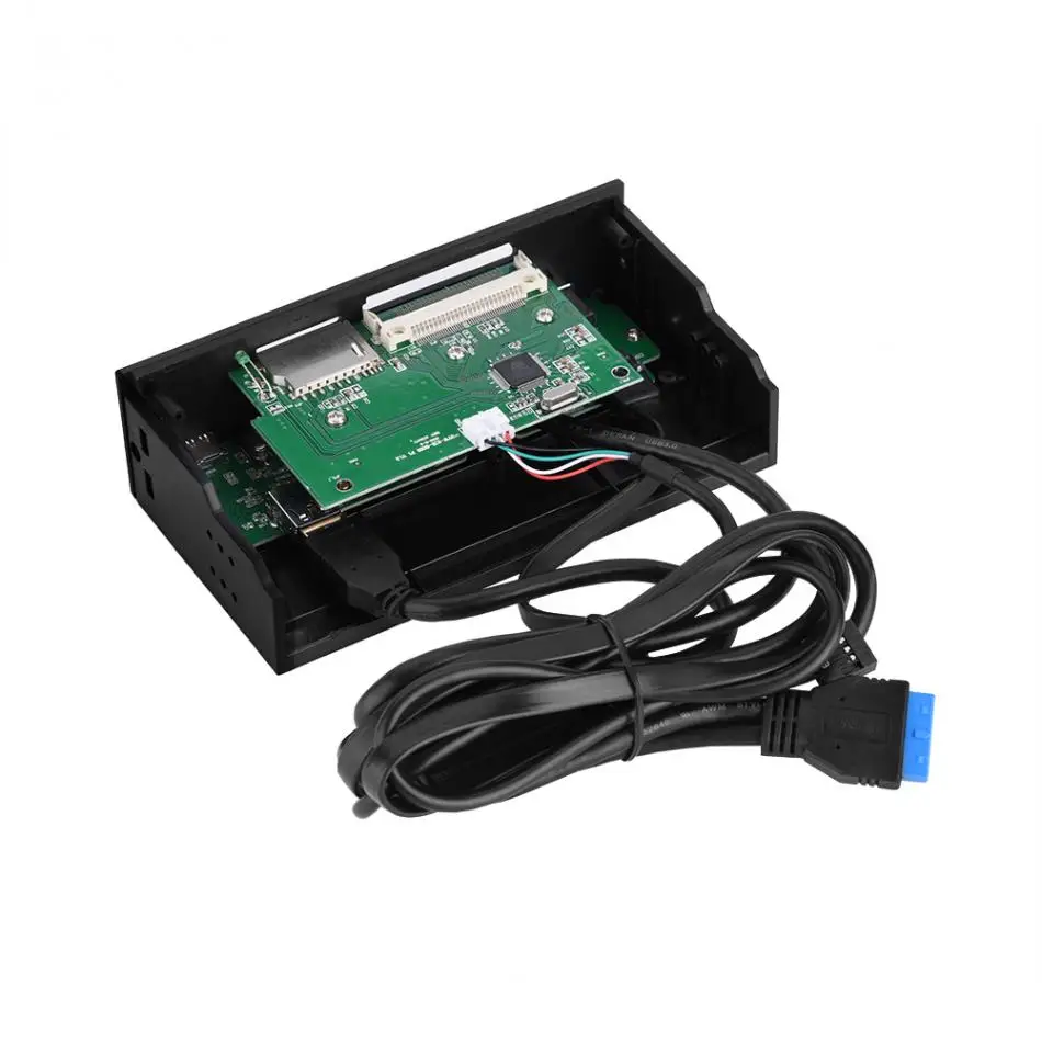 Este es un lector de tarjetas multifuncional que cuenta con tres puertos USB 3,0, un puerto USB 3,1, un puerto eSATA y 6 ranuras para tarjetas. Es compatible con tarjetas M2, MSO, SD, MS, XD, 64G CF y le permite transferir archivos entre sus medios Flash y el ordenador de forma fácil y rápida. Se puede montar fácilmente en la bahía de la Unidad de 5,25 "de la carcasa de su ordenador para una mayor capacidad de lectura de tarjetas.