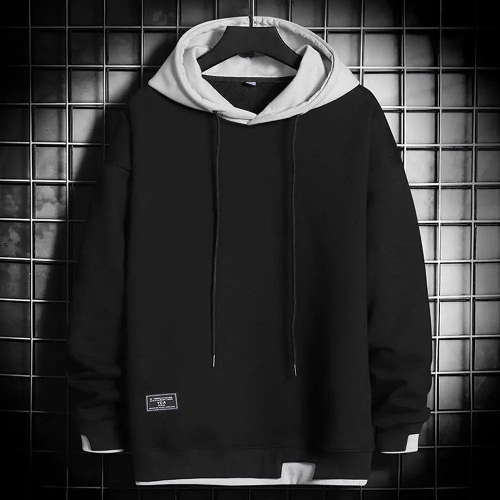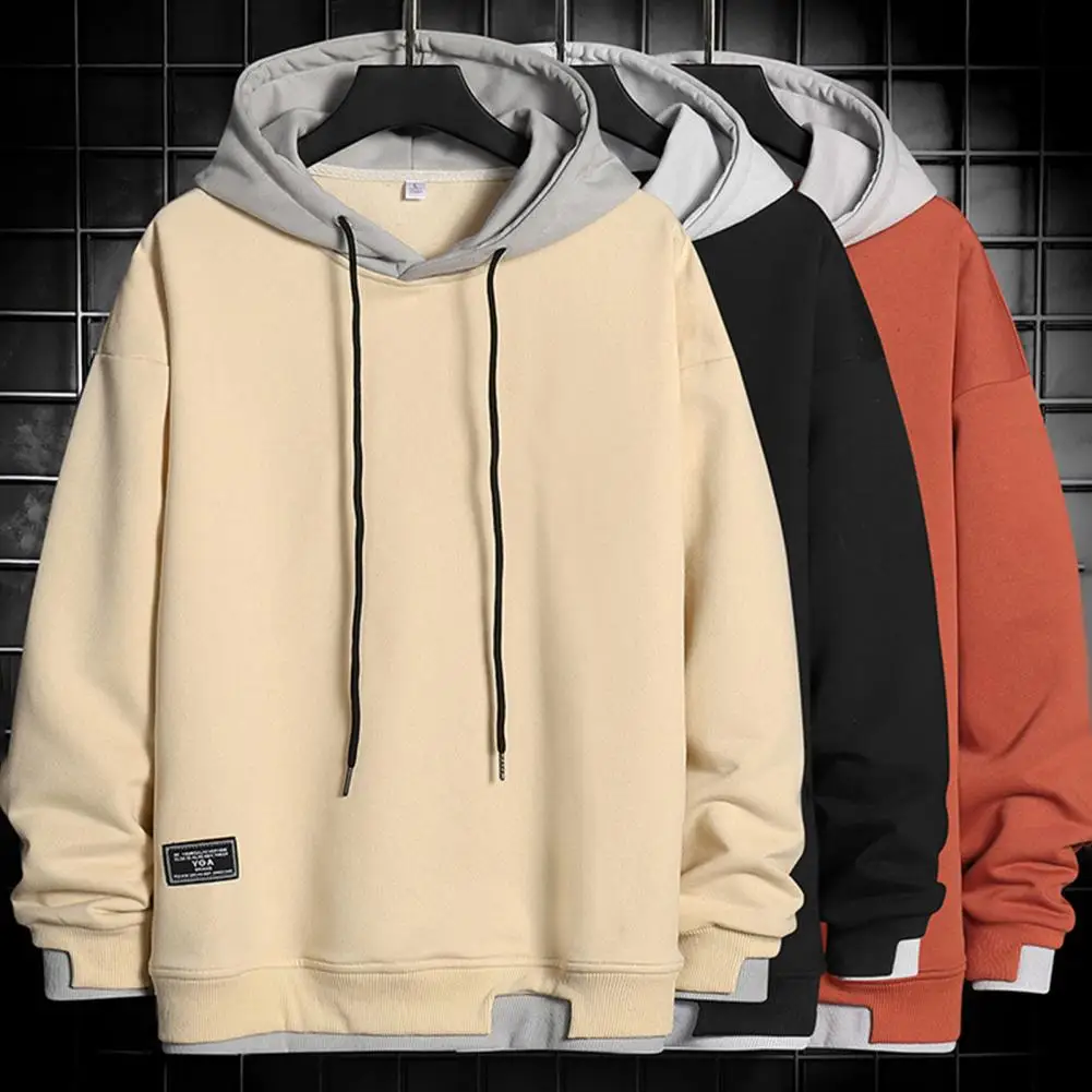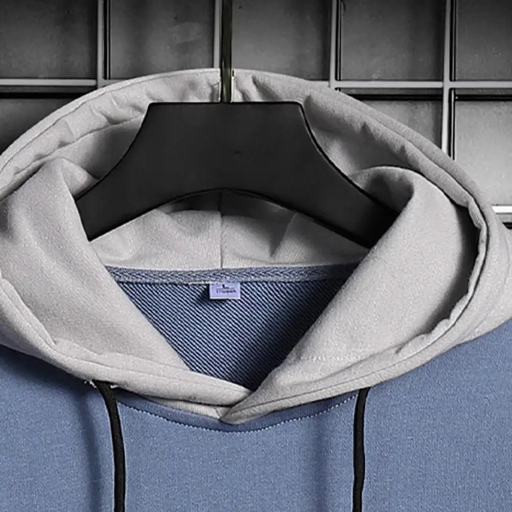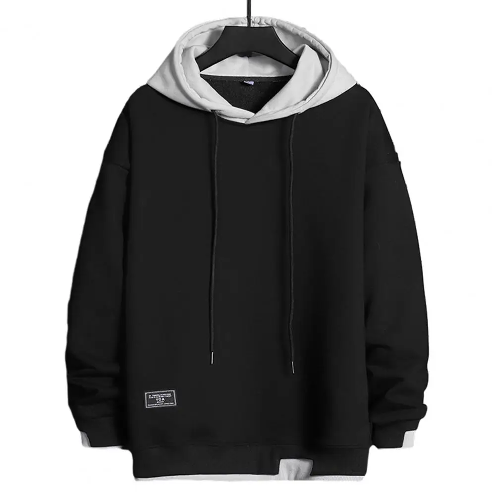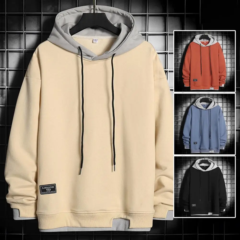Loose Fit Hoodie Outdoor Sports Hoodie Hombres Color a juego Fake Sudadera de dos piezas con cordón con capucha Loose Fit Long