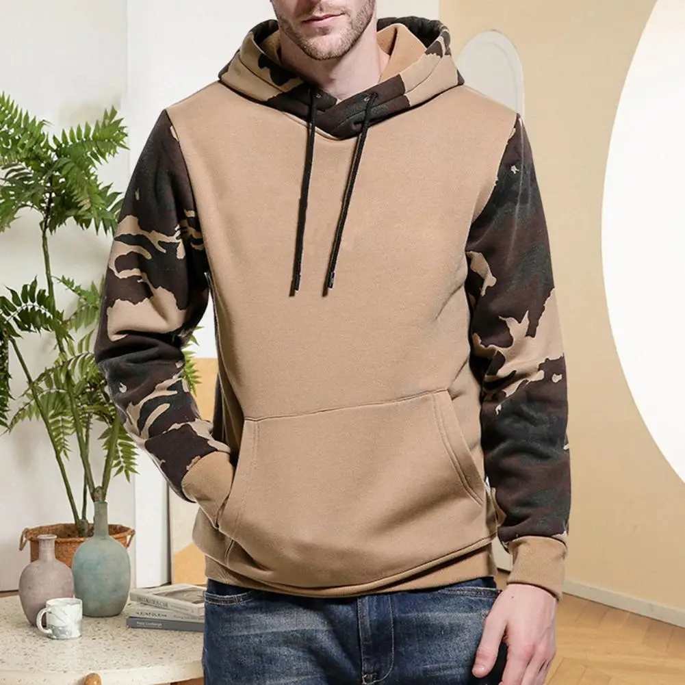 Sudadera con capucha para hombre con estampado de camuflaje, Sudadera con capucha para hombre con bolsillo de parche con cordón, puño elástico para Otoño Invierno, suave, grueso, cálido, medio