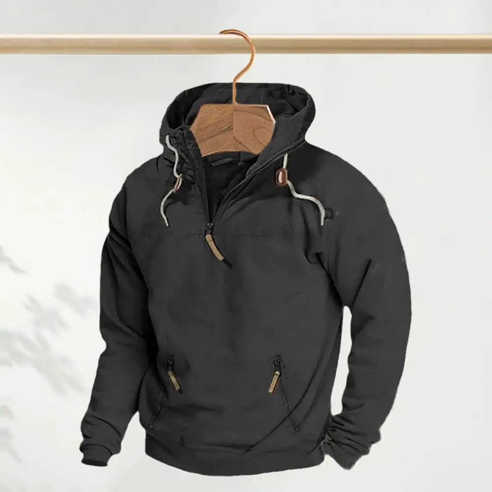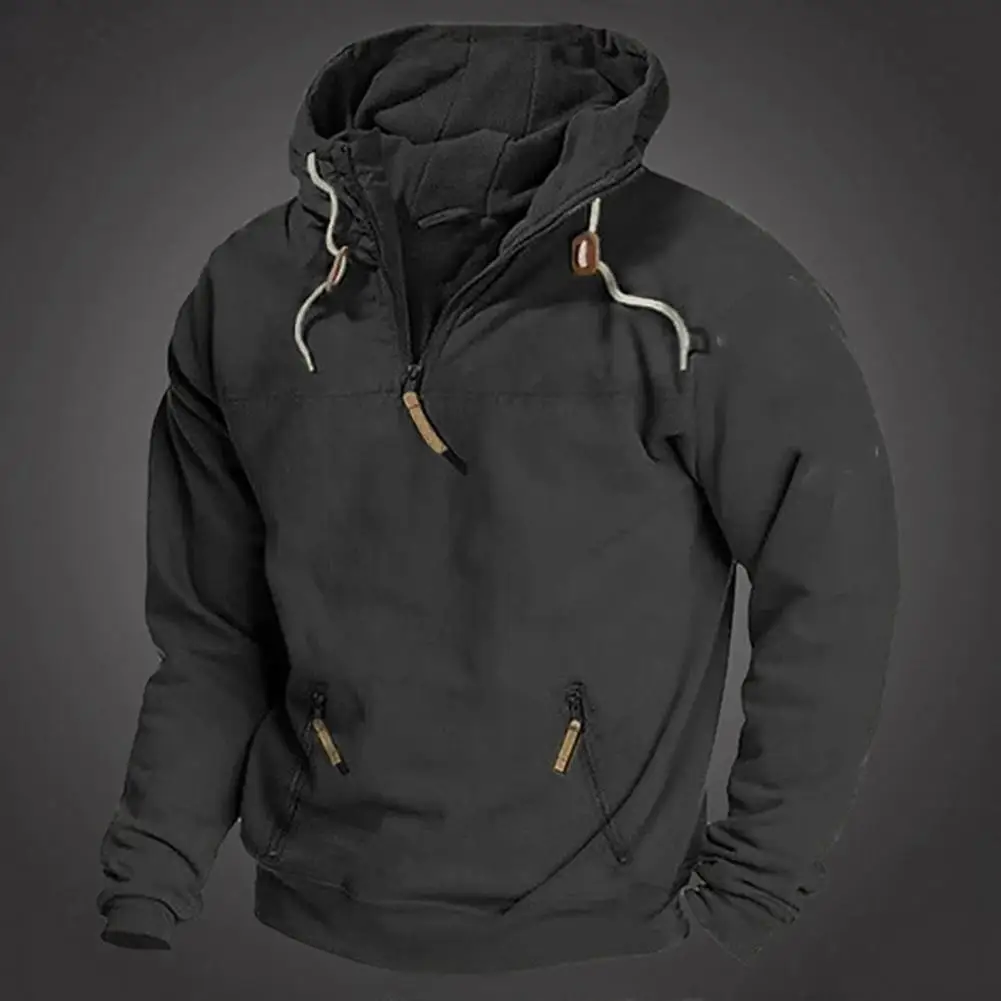 Sudadera deportiva de entrenamiento para hombre, sudadera deportiva de invierno, sudadera con escote y cremallera de Color sólido para hombre, con bolsillos con capucha, Ideal para gimnasio
