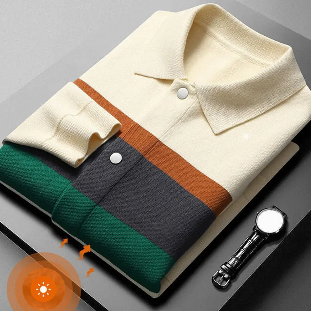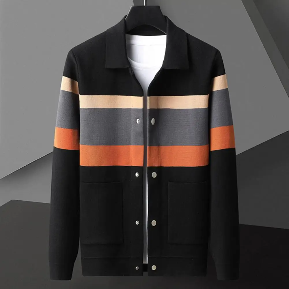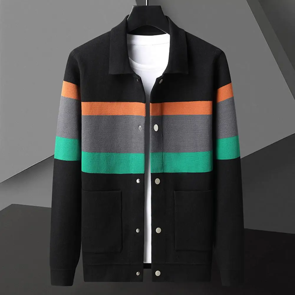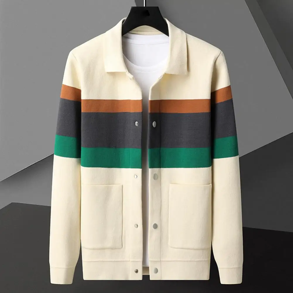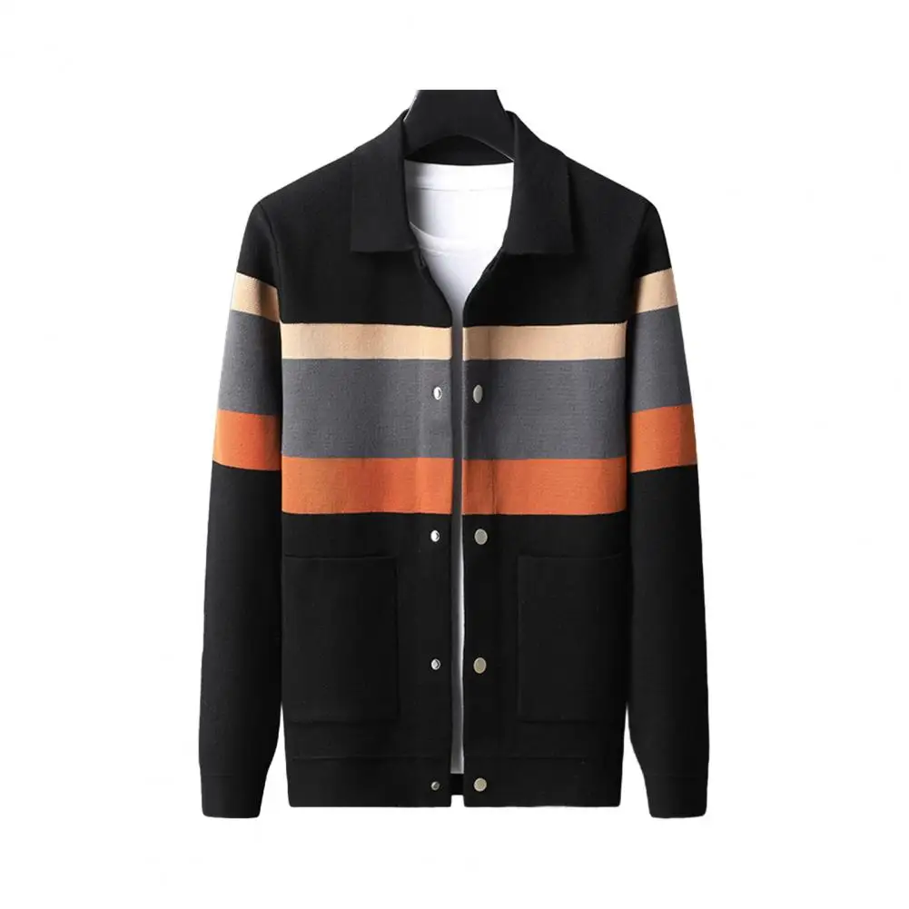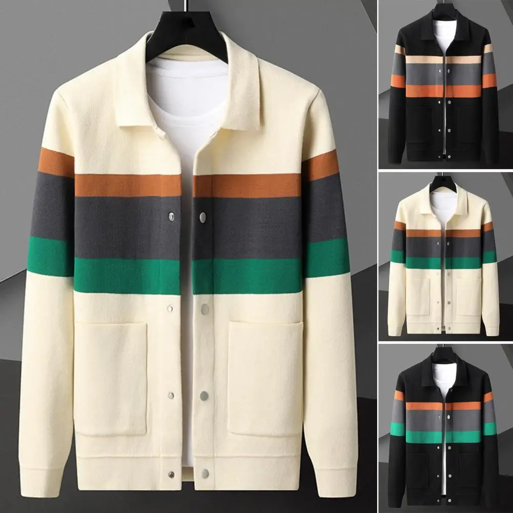 Comprar Suéter de mezcla de algodón para hombre, cárdigan de bloque de colores con cuello vuelto y bolsillos, de un solo pecho, elegante, Otoño e Invierno