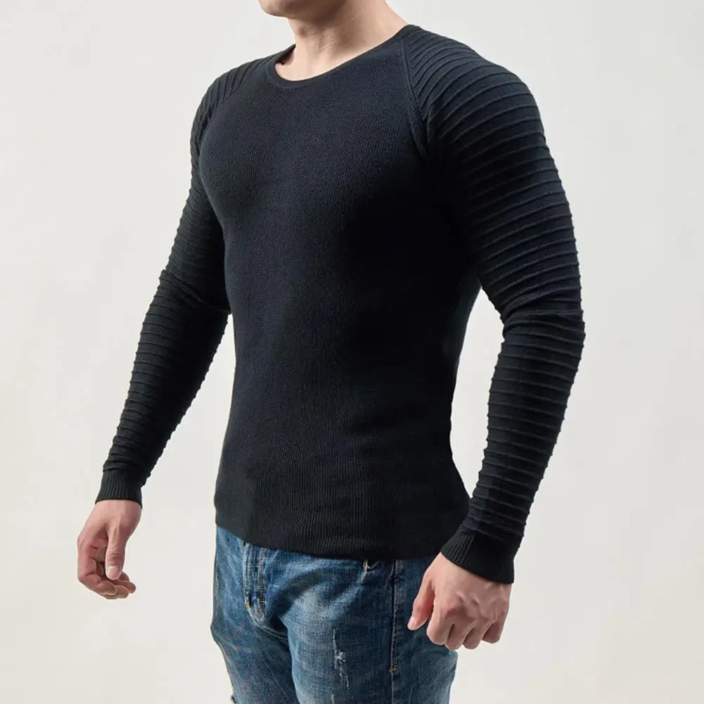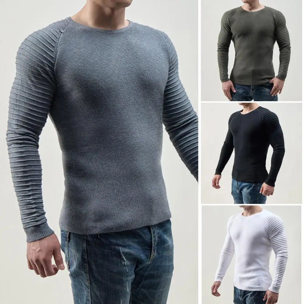 Estilo: Casual Tipo de ajuste: Delgado Género: Hombres Longitud: Regular Cuello: O Cuello Manga: Manga larga Temporada: Otoño, Invierno, Primavera Características: Aplique de rayas, Color sólido, Suave