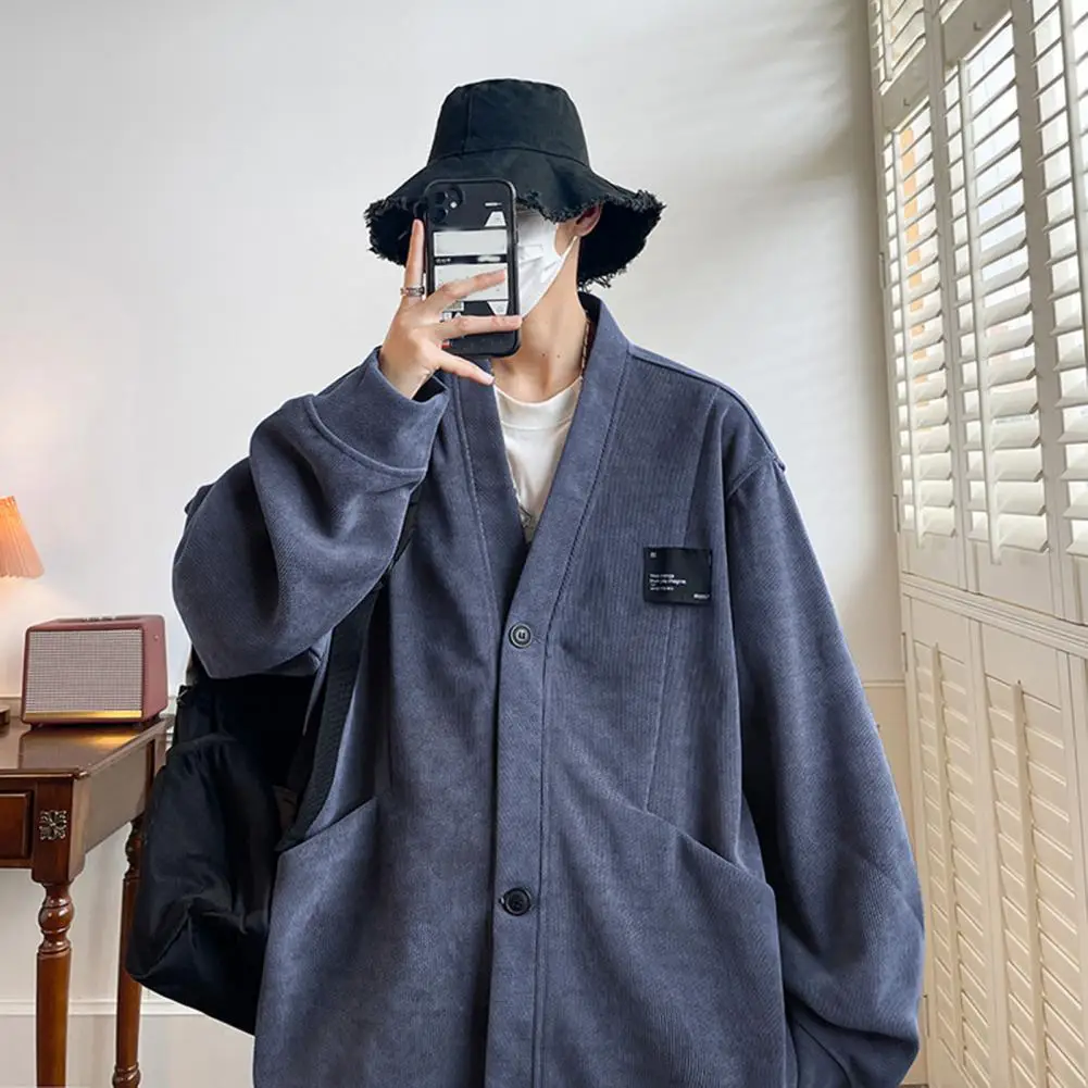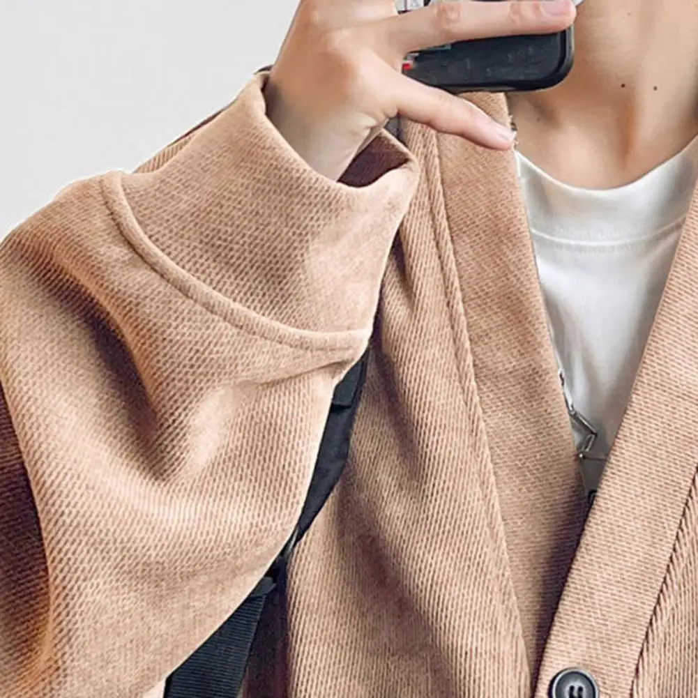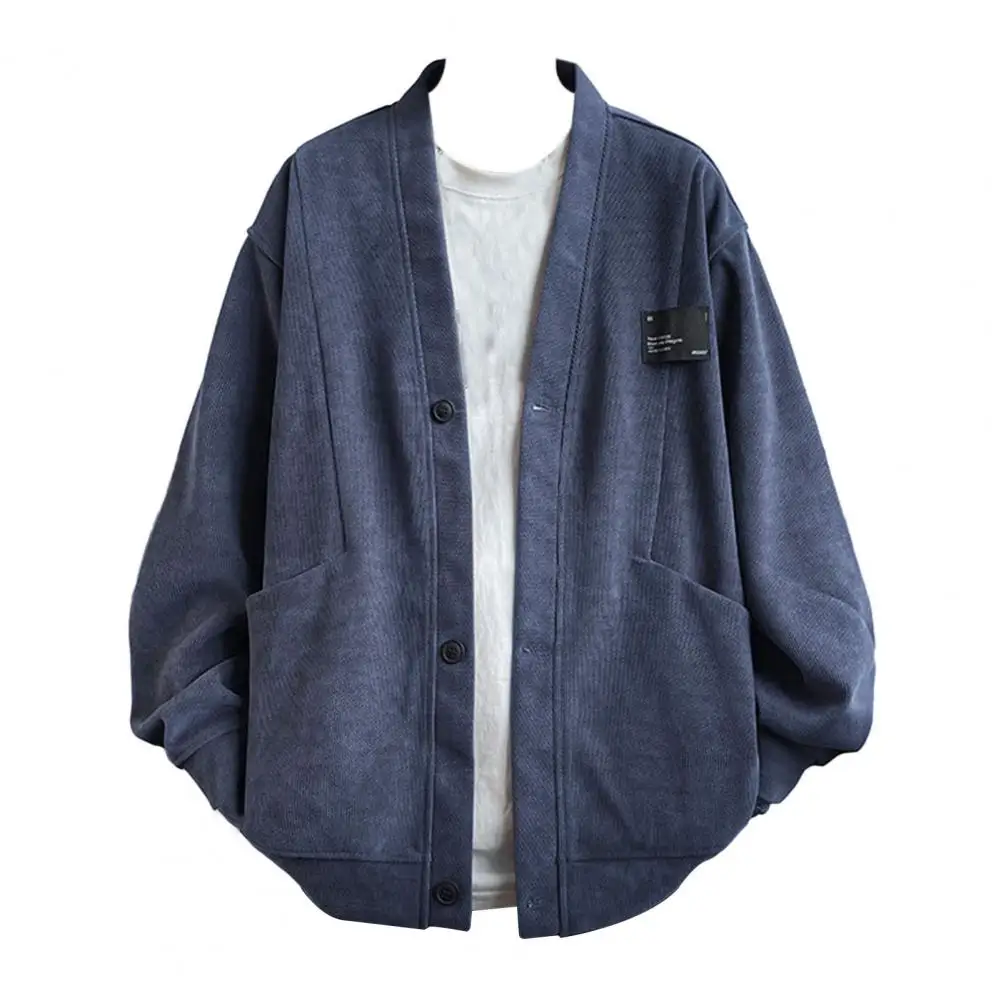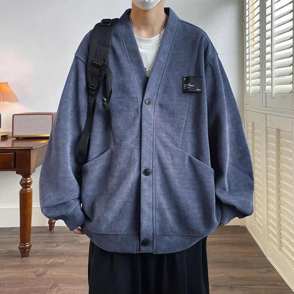 Suéter suelto informal para hombre, cárdigan tejido con cuello en V, suéter suelto, abrigo con bolsillos, moda de un solo pecho para otoño