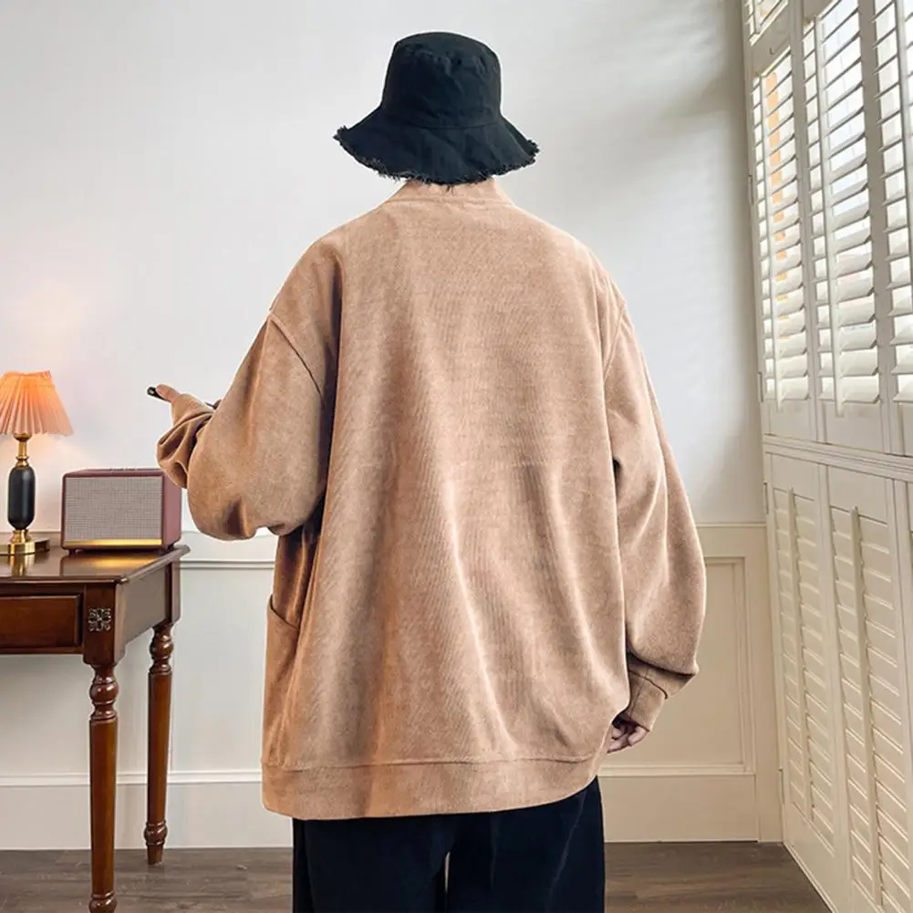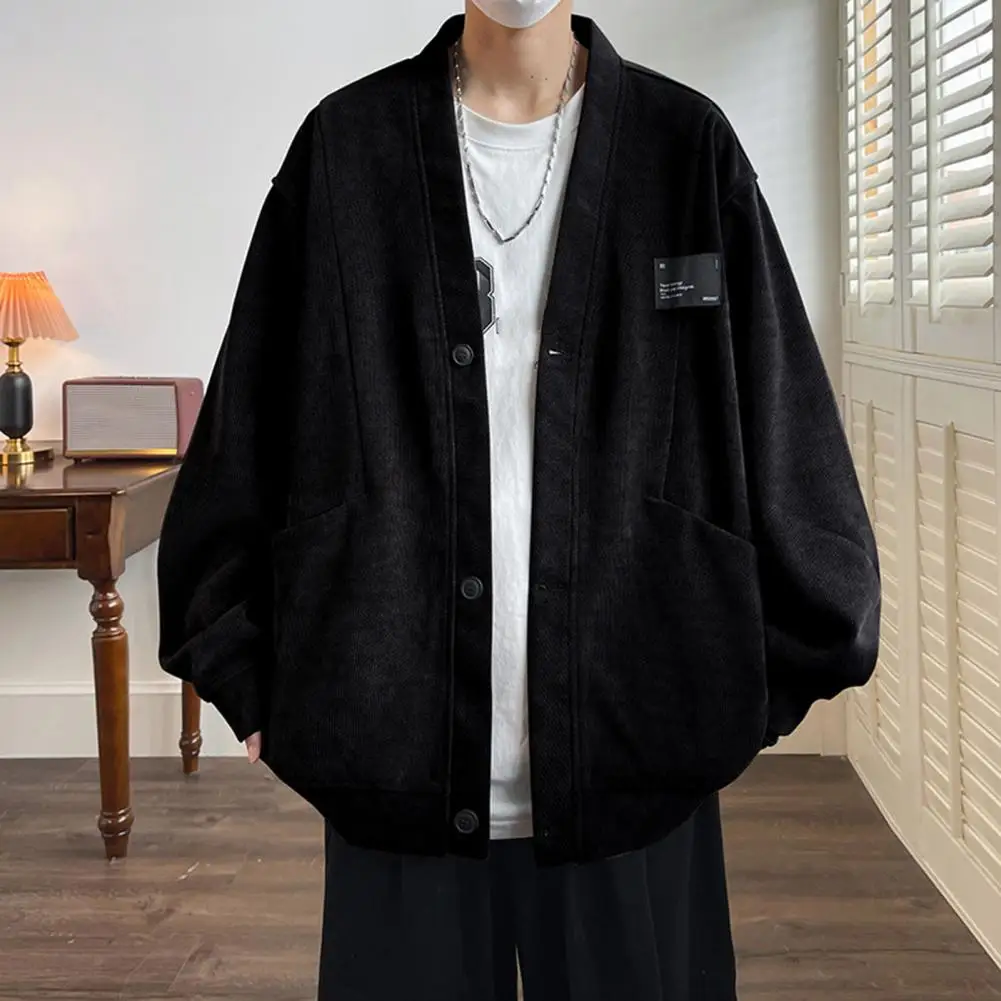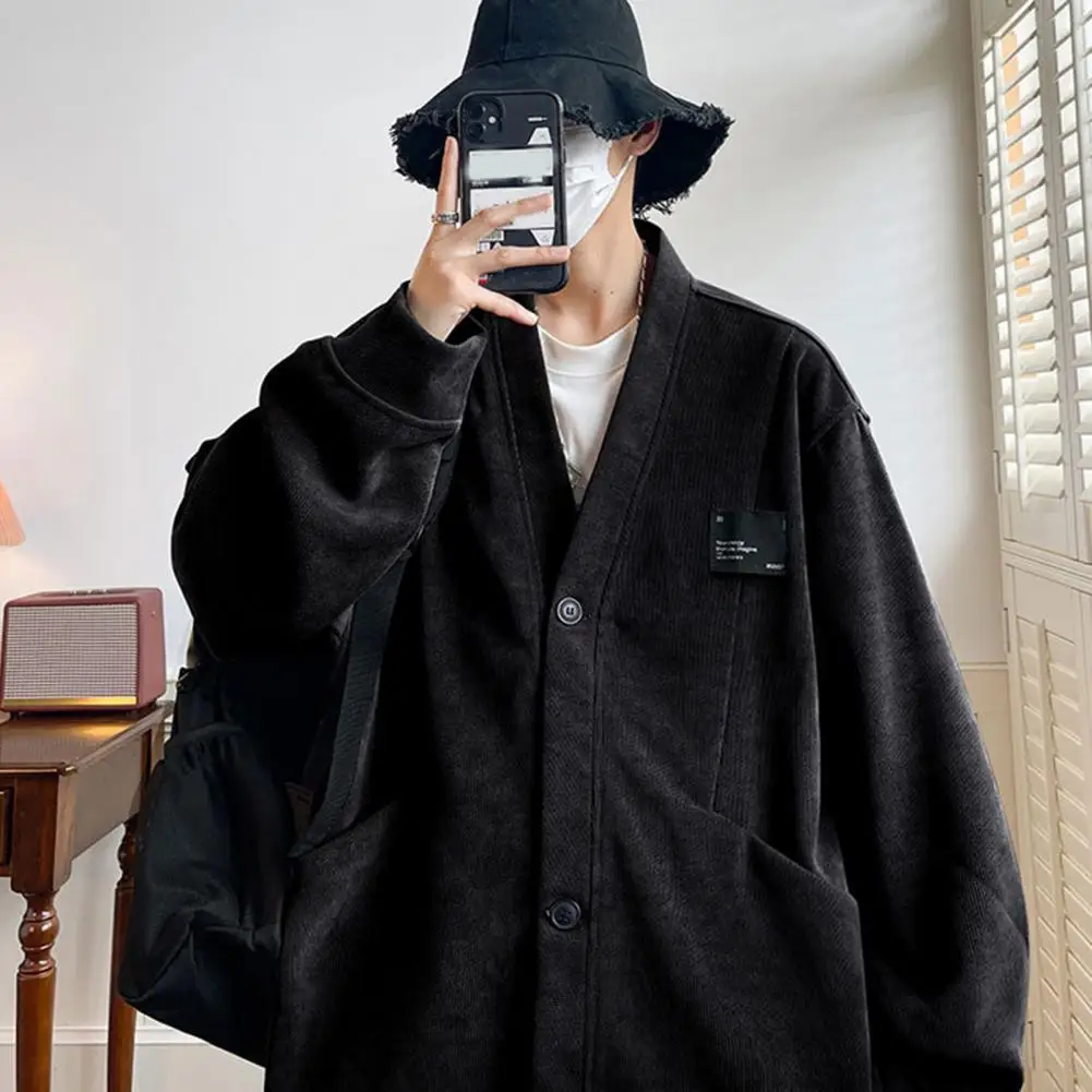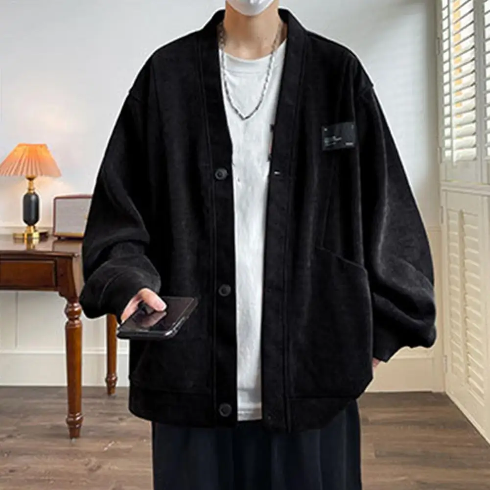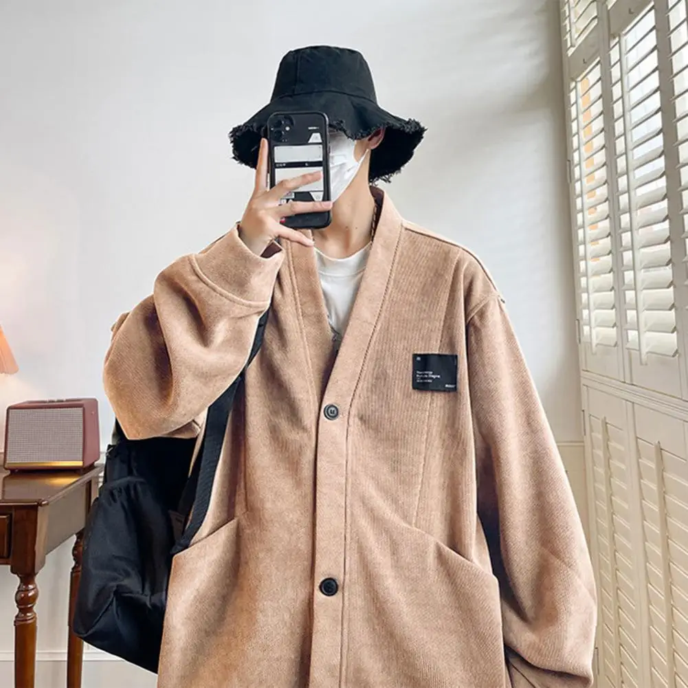 Suéter suelto informal para hombre, cárdigan tejido con cuello en V, suéter suelto, abrigo con bolsillos, moda de un solo pecho para otoño