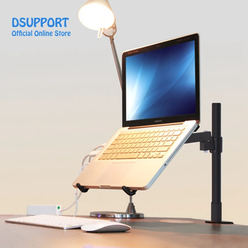 Soporte para ordenador portátil/portátil de 11-15 pulgadas con sujeción de movimiento completo y sujeción de escritorio ajustable en altura