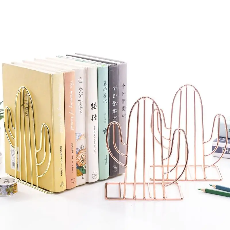 Comprar Sujetalibros de Metal con forma de Cactus, soporte creativo para libros, organizador de escritorio, estante de almacenamiento, 2 unids/par