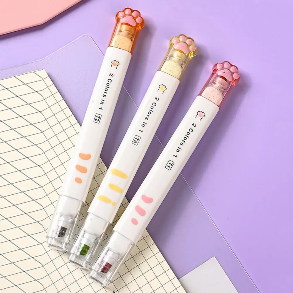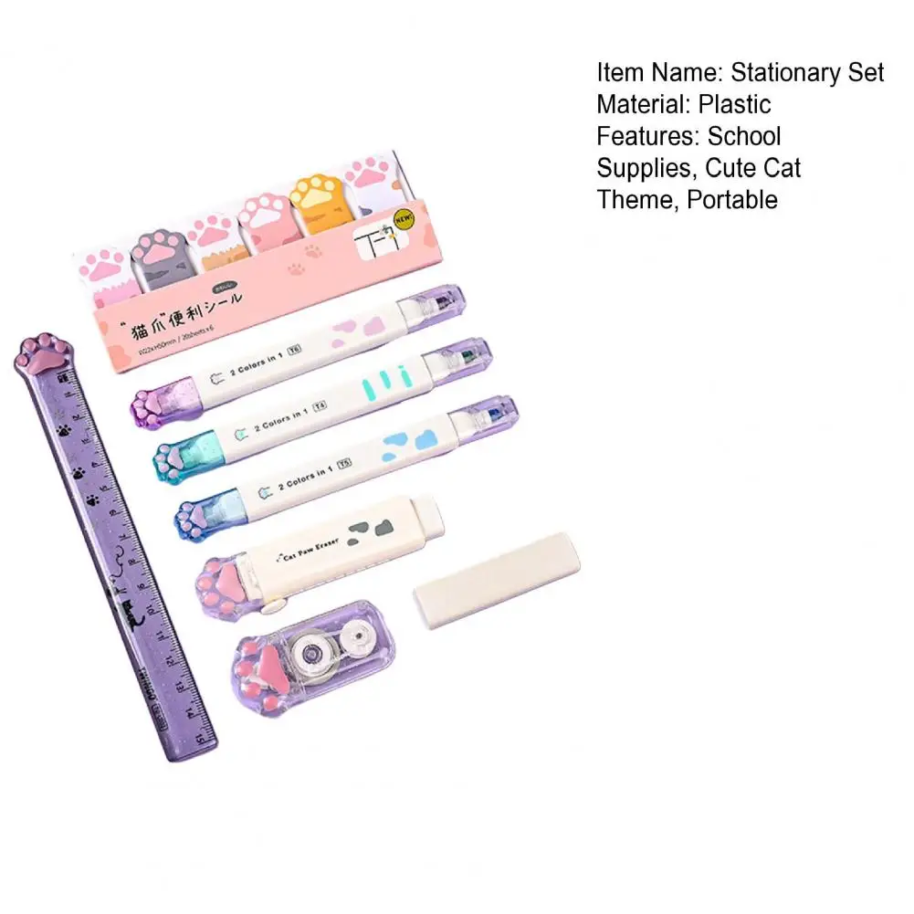 Útiles escolares con temática de gatos Juego de papelería de Pata de Gato adorable Borrador Resaltadores Notas adhesivas Regla Caja de lápices para la escuela para gato