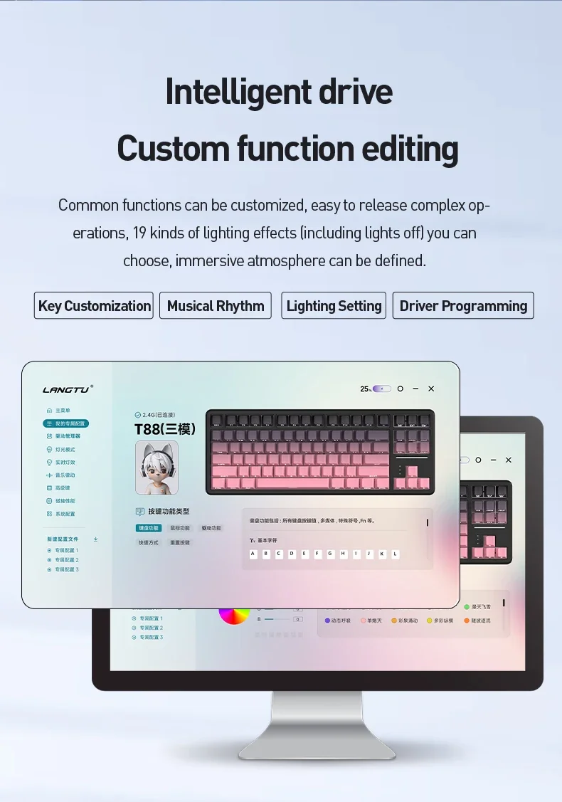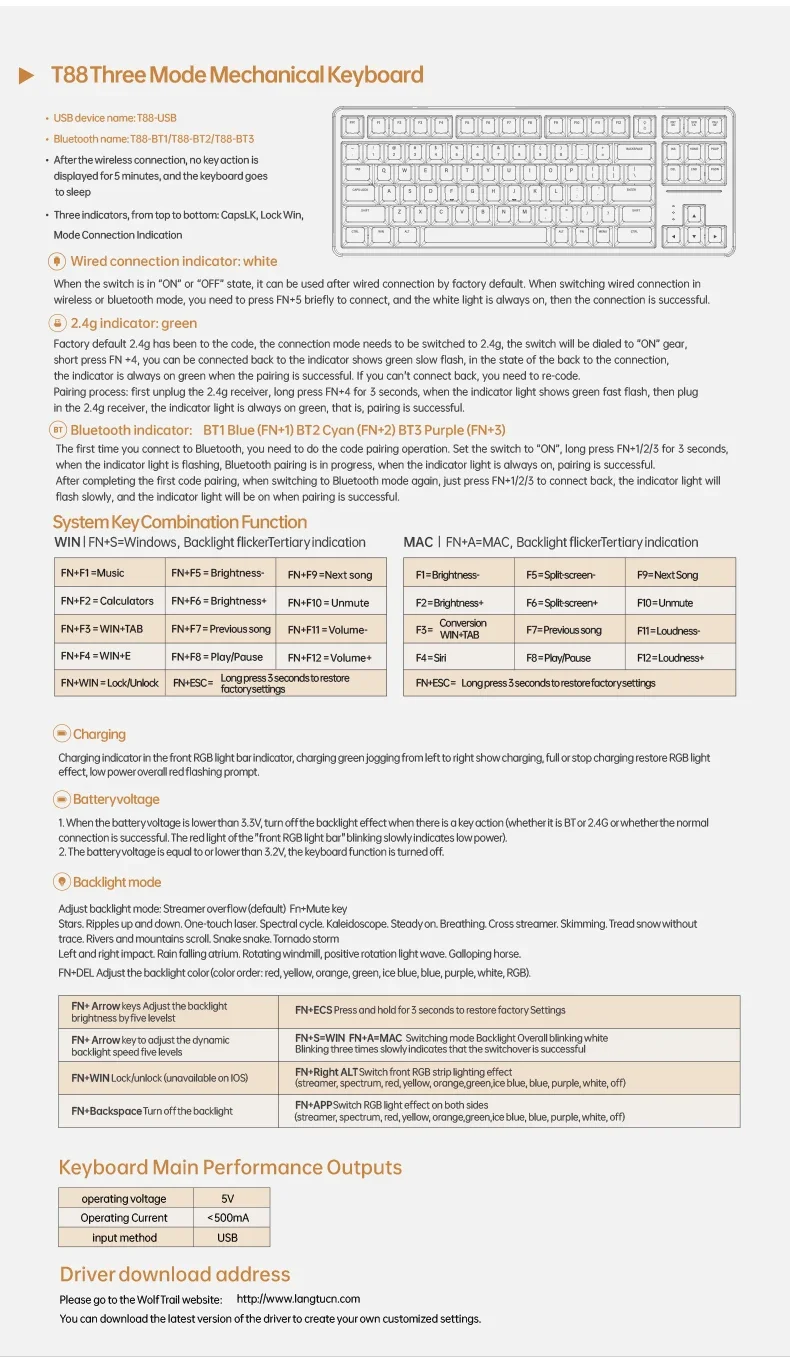 SUMREDA T88 Teclado inalámbrico personalizado para deportes electrónicos 88 teclas para juegos Bluetooth RGB Hotswap Grabado lateral ultrasilencioso Juego de oficina