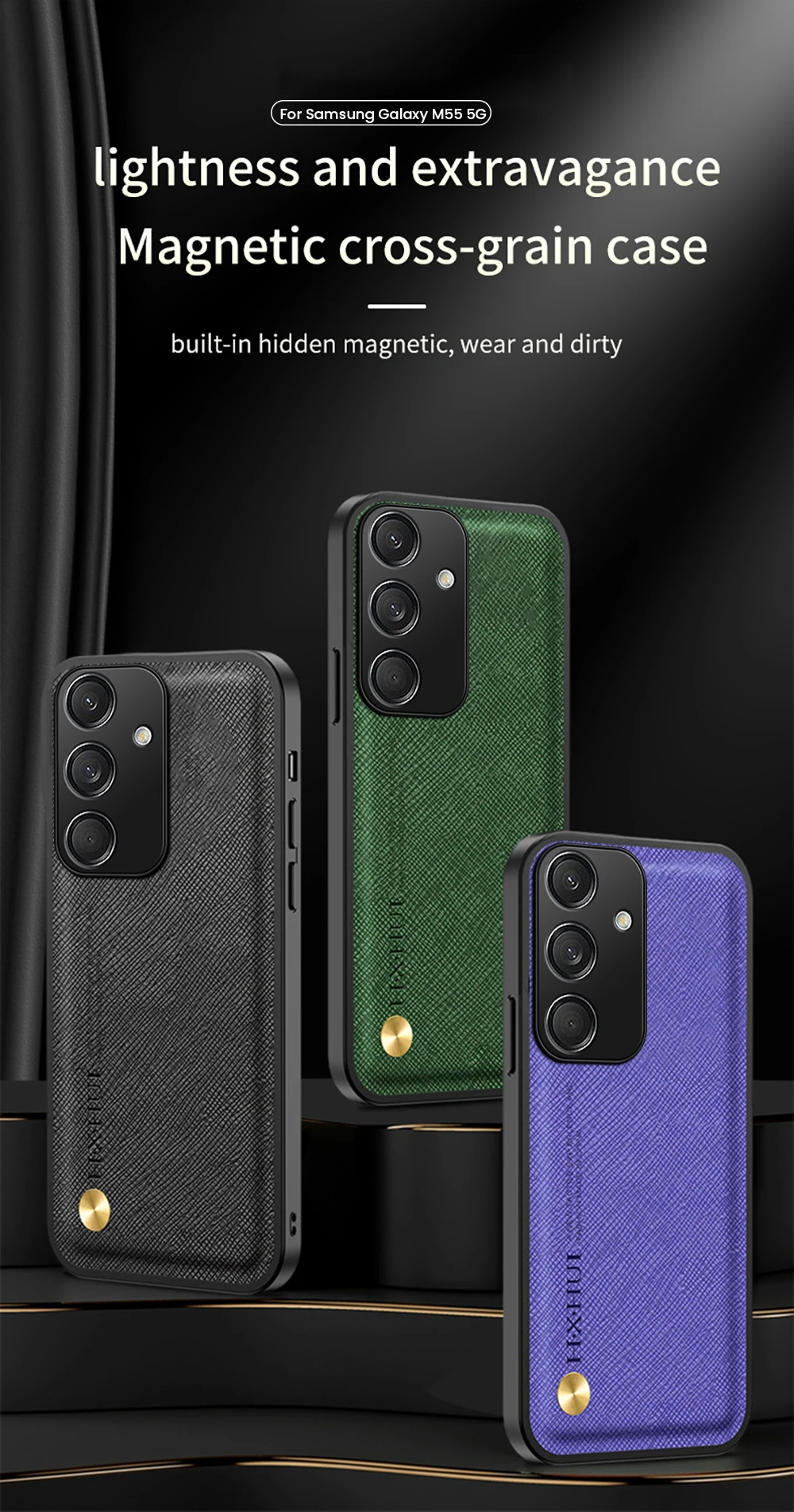 Comprar Sumsung-funda trasera magnética de cuero de grano cruzado para Samsung Galaxy M55 M 55 5G, 2024 TPU, parachoques suave a prueba de golpes