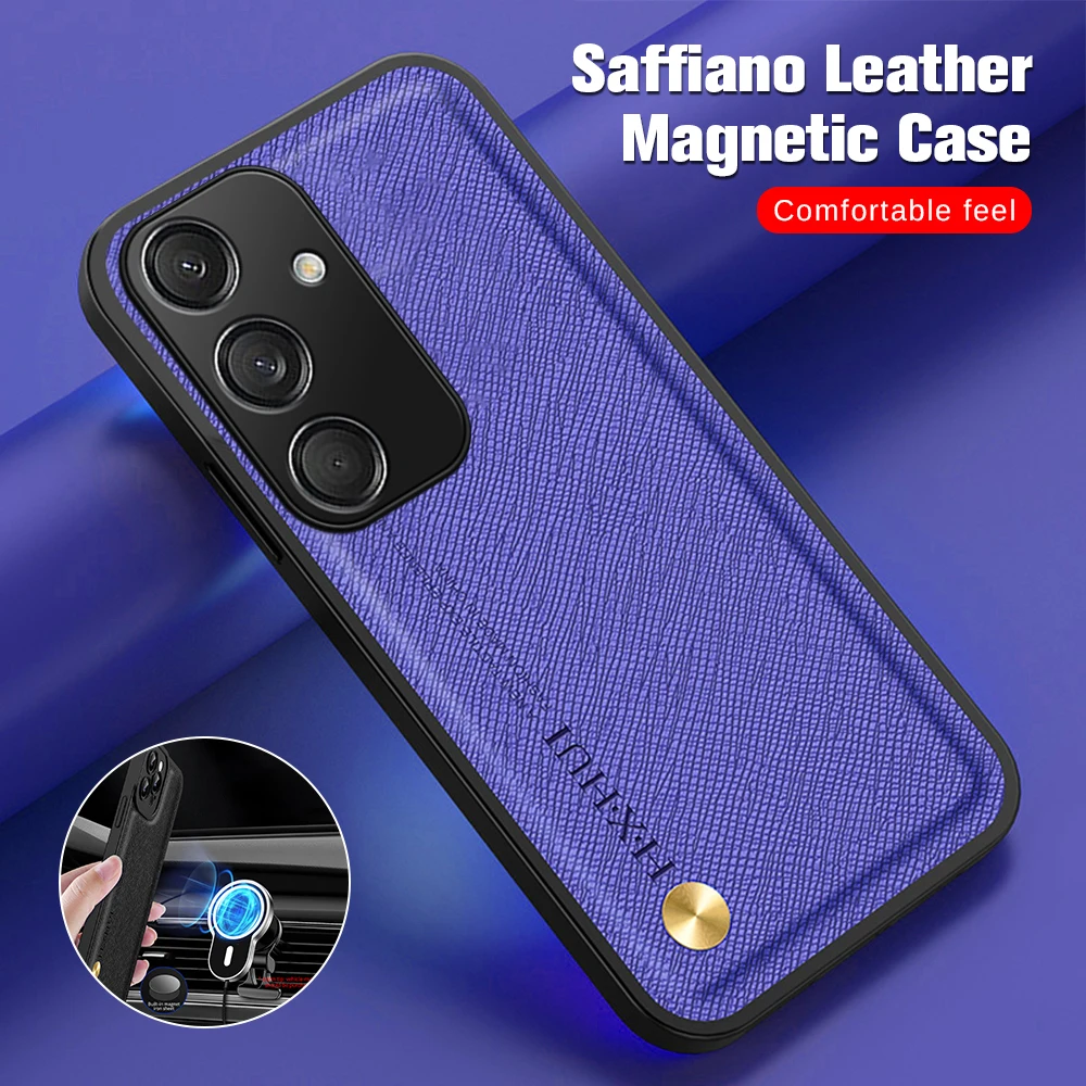Comprar Sumsung-funda trasera magnética de cuero de grano cruzado para Samsung Galaxy M55 M 55 5G, 2024 TPU, parachoques suave a prueba de golpes