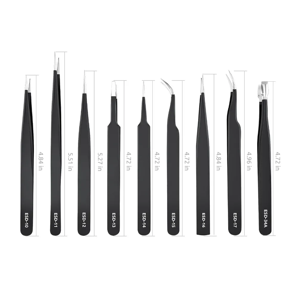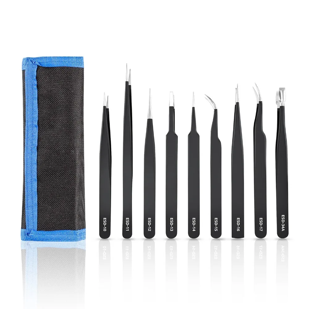 Comprar SunFounder-Juego de pinzas antiestáticas de acero inoxidable, 9 piezas, multiestándar, no magnéticas, Esd