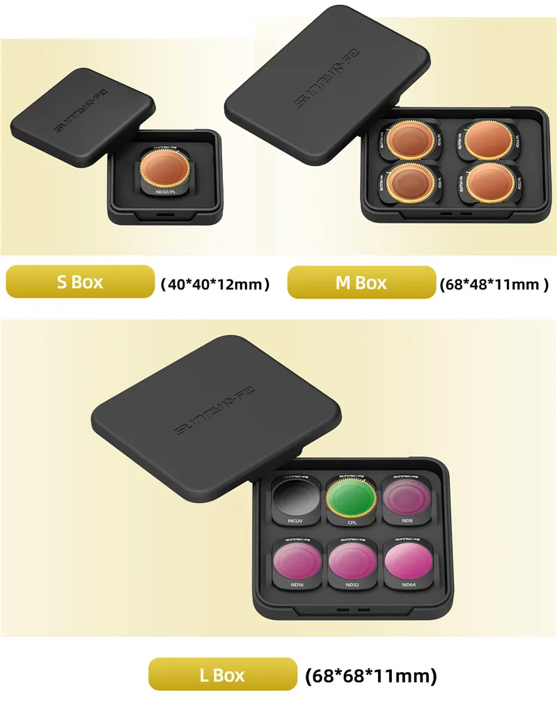El Kit de filtros ND8, ND16, ND32 y ND64 ayuda a reducir los niveles variables de luz, de 3 a 6 paradas, control preciso de la velocidad de obturación, control de exposición correcto en diferentes condiciones de iluminación, y produce imágenes fluidas.