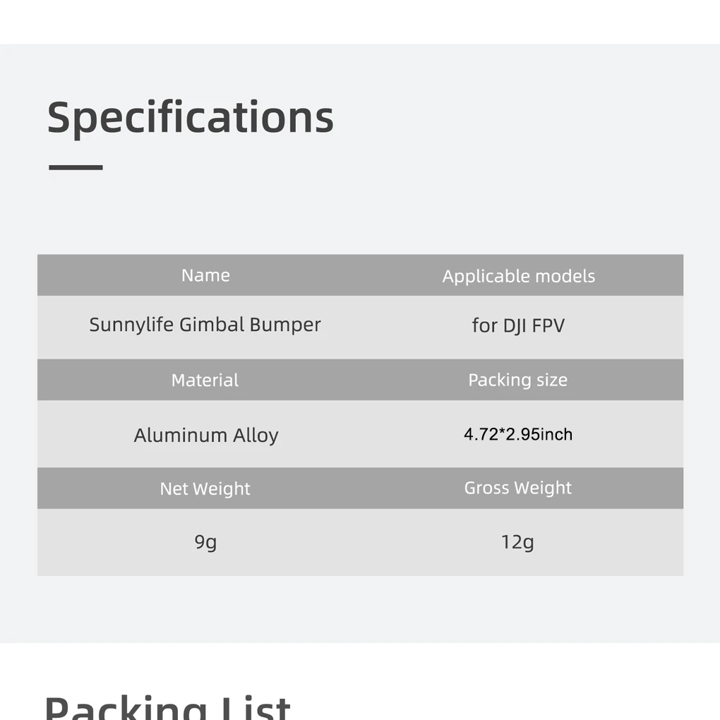 Comprar Sunnylife Protector de lente de cámara, parachoques de cardán, accesorios de avión, negro