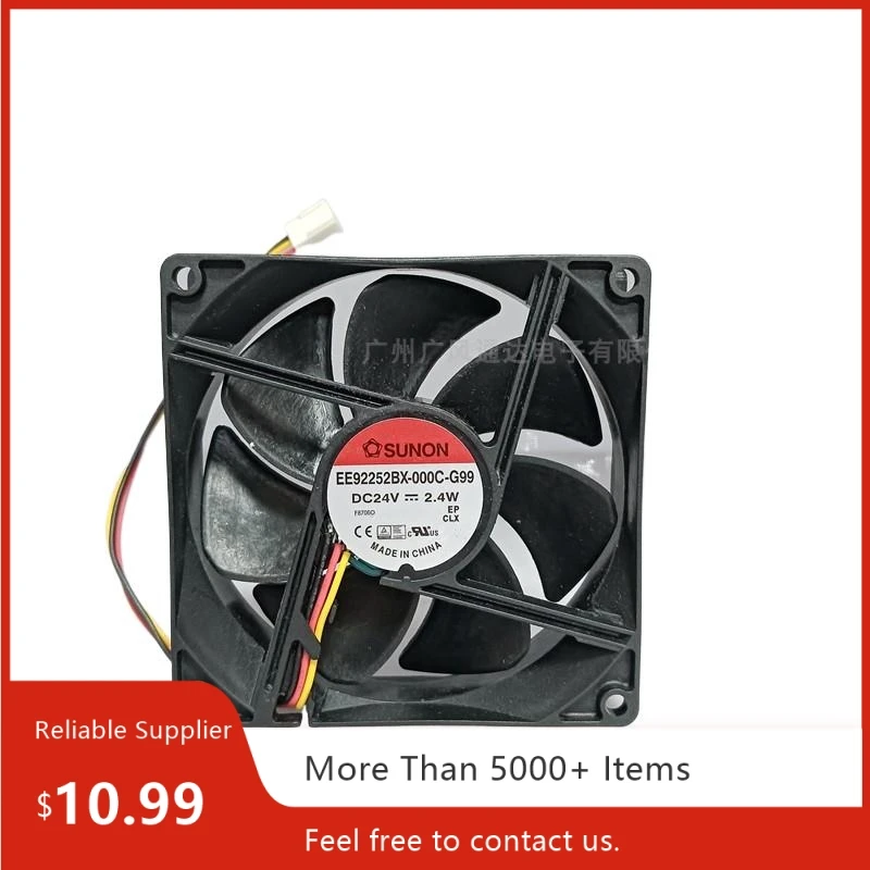 Product Description This genuine SUNON EE92252BX-000C-G99 industrial cooling fan is a reliable 90x90x25mm solution, expertly designed for efficient thermal management in VFD inverters and various industrial applications. Operating on a robust 24V DC, this fan provides consistent airflow for dependable cooling. Key Selling Points: Robust 24V DC Operation: Engineered for stable and efficient performance with a 24V DC power input, making it ideal for a wide range of industrial control systems and specialized machinery. Energy-Efficient Cooling: With a power consumption of just 2.40W, this fan provides effective cooling while maintaining high energy efficiency, ideal for continuously operating industrial electronics. Standard 90x90x25mm Size: Its widely compatible dimensions make it a versatile replacement or upgrade for a broad range of cooling modules and equipment ventilation needs in standard enclosures. Reliable SUNON Quality: Manufactured by SUNON, a trusted leader in cooling technology, this fan is built for consistent and dependable operation, crucial for the longevity of inverter cooling systems and other sensitive equipment. Optimized for Industrial Use: Designed to provide consistent airflow essential for maintaining optimal operating temperatures in demanding industrial environments, ensuring the stability and performance of critical components. Application Areas: This high-performance industrial fan is ideal for VFD inverter cooling, industrial control cabinets, factory automation equipment, power supply units (PSU), telecom infrastructure, server cooling, welding machines, HVAC systems, and any other applications where reliable DC cooling fans and robust thermal management solutions are essential for maintaining optimal operating temperatures and ensuring equipment longevity.