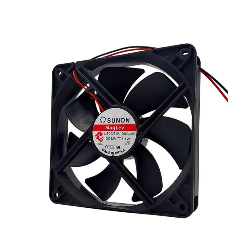 Product Description This high-airflow 120x120x25mm industrial cooling fan (Model: MEC0251V1-000C-A99) from SUNON is engineered for effective thermal management in various electronic and industrial applications. Featuring a robust high-precision, maintenance-free dual ball bearing design and locked rotor protection, it ensures reliable, long-lasting performance and safeguards against fan failure. Key Selling Points: Exceptional Airflow: Delivers a substantial 108.2 CFM (2.938 m³/min) of airflow and 0.28 In-H2O of static pressure, effectively dissipating heat from computer components and enclosures. Built-in Locked Rotor Protection: Features a crucial safety mechanism to prevent motor damage in case of fan blade obstruction, enhancing longevity and system integrity. Durable Dual Ball Bearings: Utilizes high-precision, maintenance-free dual ball bearings, guaranteeing an impressive operational lifespan of up to 40,000 hours. Wide Operating Temperature Range: Functions reliably in environments from -15℃ to 65℃, making it suitable for diverse industrial and computing settings. Efficient Power Consumption: Operates at 12V with a low current draw of 0.45A, consuming only 5.4W of power. Application Areas: This versatile industrial cooling fan is ideal for computer case cooling, CPU heat dissipation, server rack ventilation, electronic enclosure cooling, industrial control panels, power supply cooling, telecom equipment, and other applications requiring robust thermal management solutions and forced air ventilation.