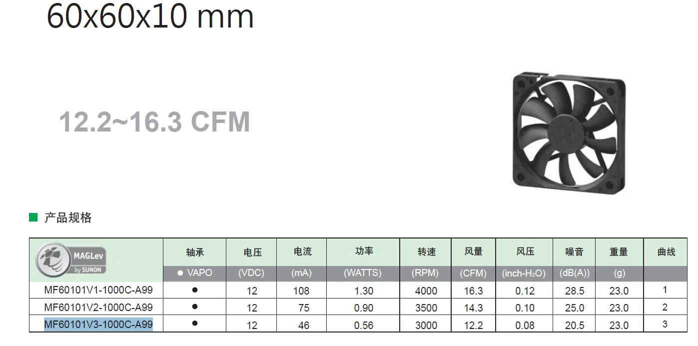 Comprar Para Sunon MF60101V3-1000C-A99 60 mm x 10 mm Slim DC 12 V ventilador de refrigeración, 3000 RPM, 12,2 CFM, para enrutador, mini PC, impresora 3D