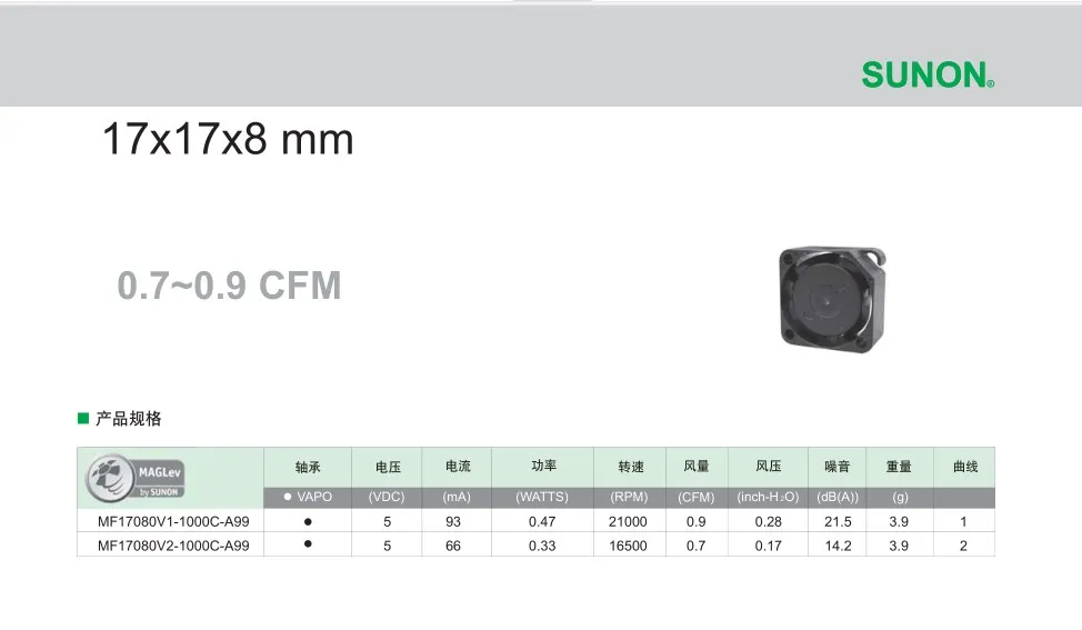 Comprar Sunon-Mini ventilador de refrigeración, 1708 MF17080V2-1000C-A99, 1,7 CM, 5V, 0,63 W, 16500RPM, rodamiento hidráulico, ventilador más pequeño