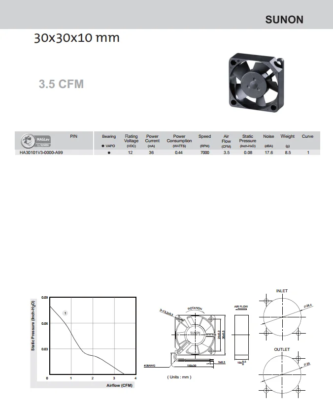 Comprar Sunon-ventilador de impresora 3D HA30101V3-000C-A99, dispositivo de refrigeración de 3cm, 30MM, 30x30x10MM, 12V, 3010 w, rodamiento Maglev, 2 pines, nuevo, 0,44