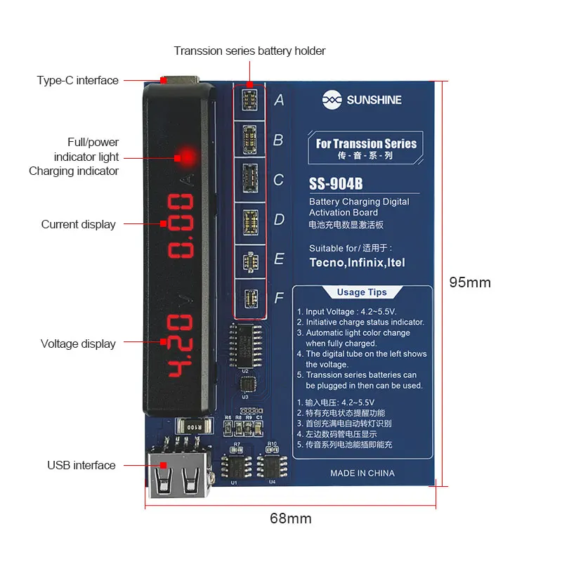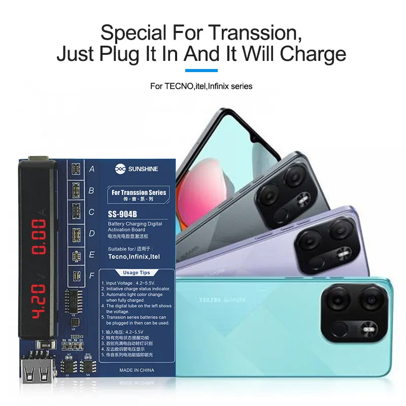 SUNSHINE-Placa de activación de batería de transmisión de SS-904B para TECNO Itel Infinix Series, con pantalla Digital, herramienta de prueba de carga rápida