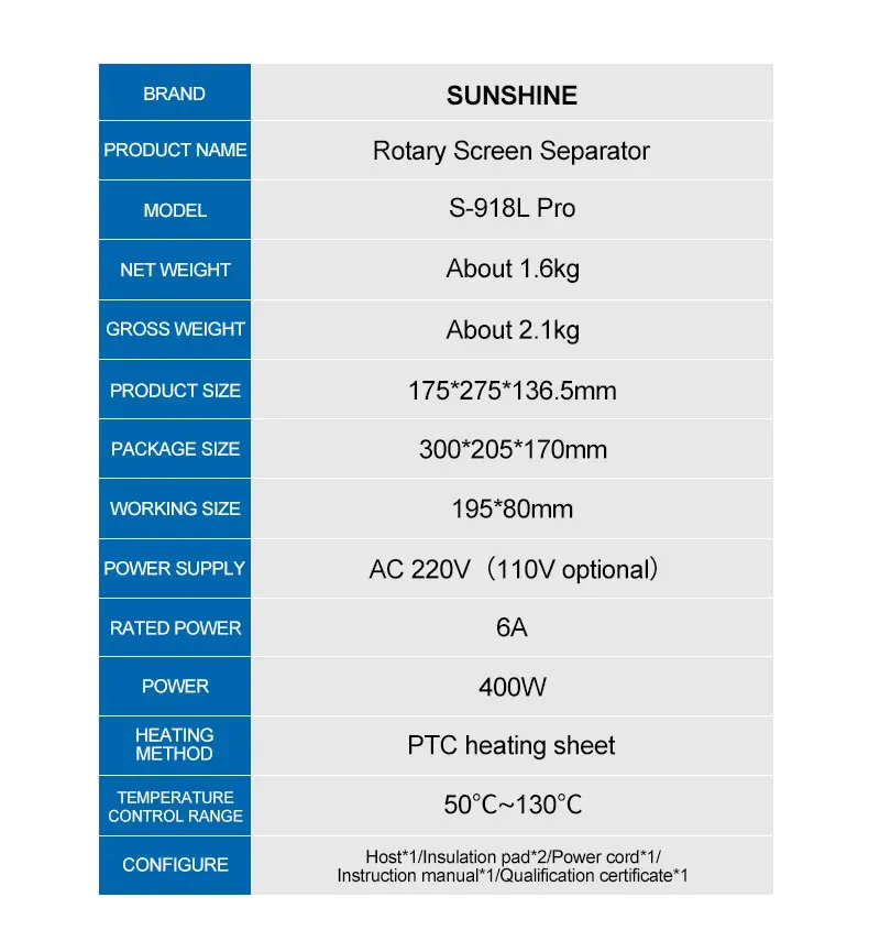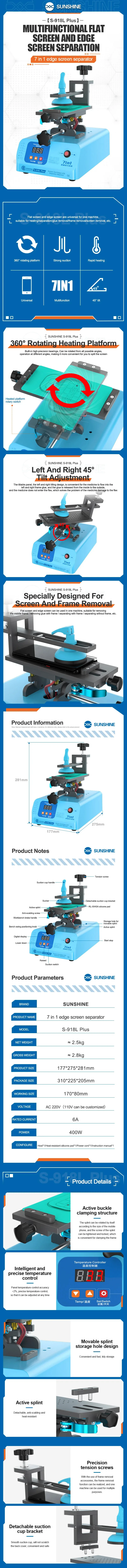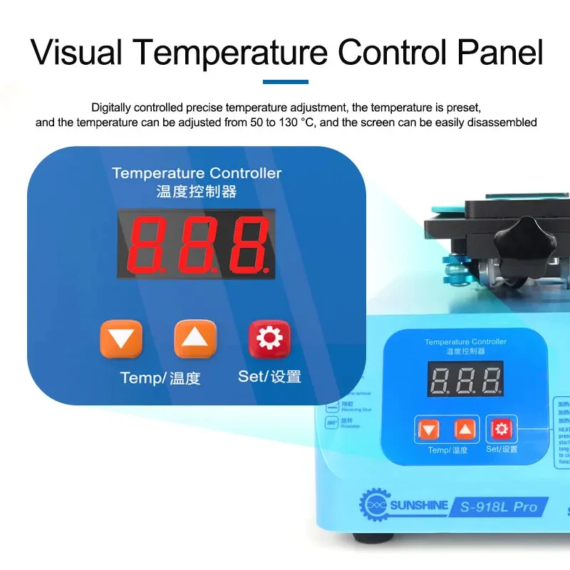 SUNSHINE S-918L Pro Plus 360° Abrazadera separadora de pantalla calentada giratoria para herramienta separadora calentada fija de pantalla de reparación de teléfonos móviles