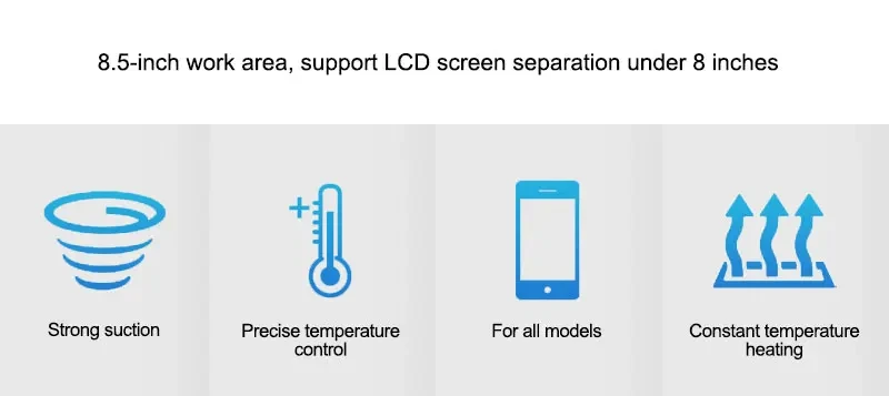 *Área de trabajo de 8,5 pulgadas, admite separación de pantalla LCD de menos de 8 pulgadas
