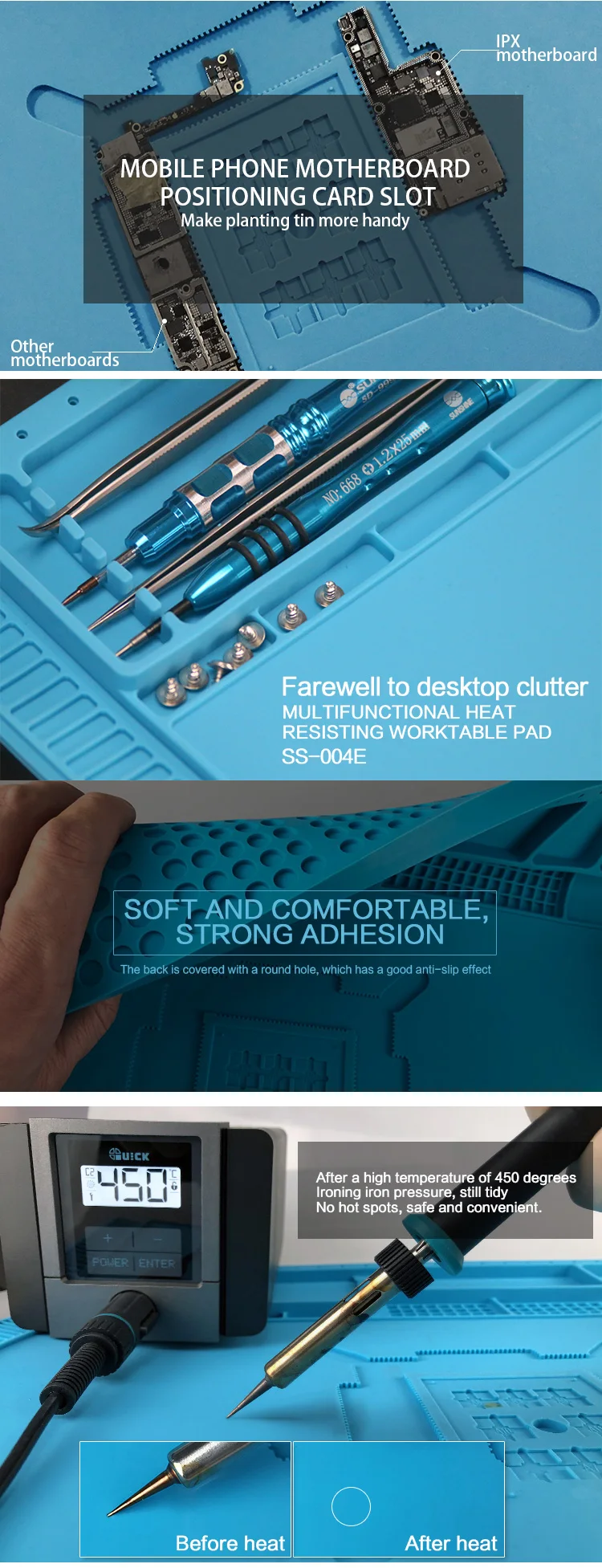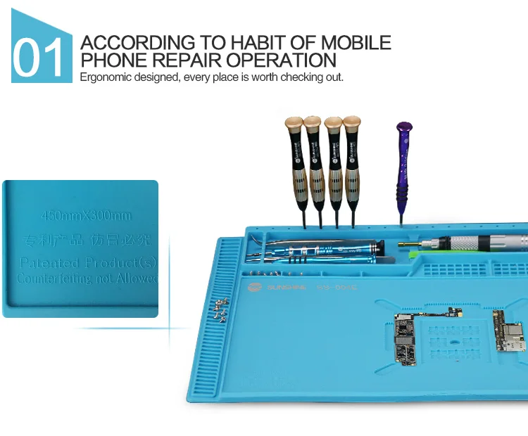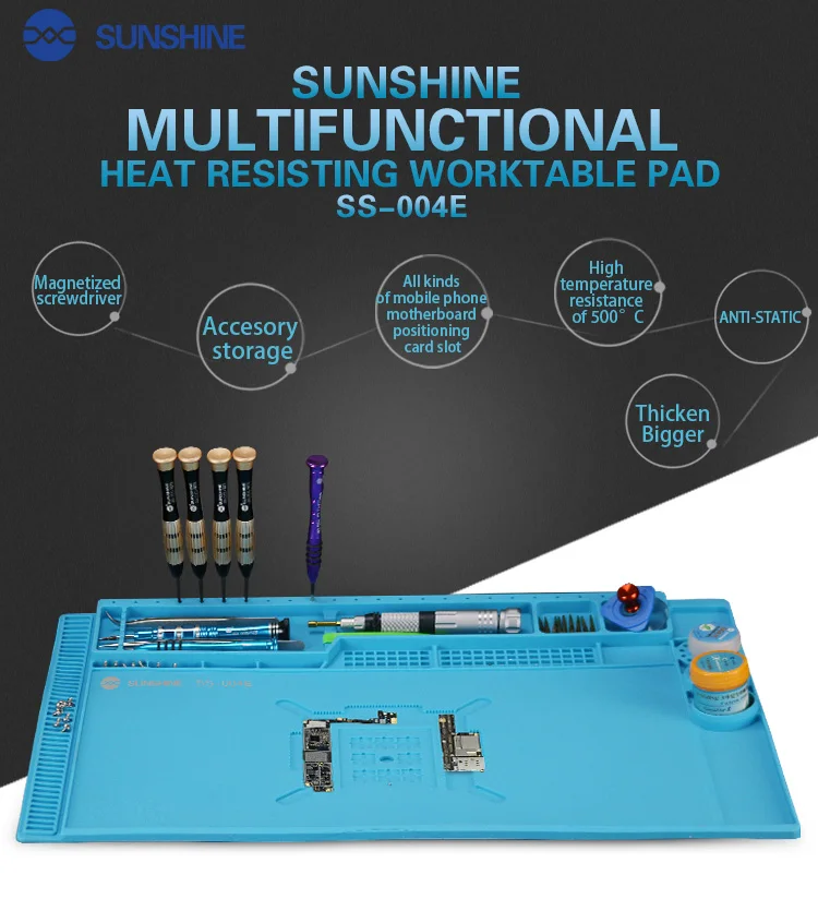 🛠️ Almohadilla de banco de trabajo multifuncional resistente al calor SUNSHINE SS-004E– Su herramienta ideal para la reparación de teléfonos móviles y la organización de componentes