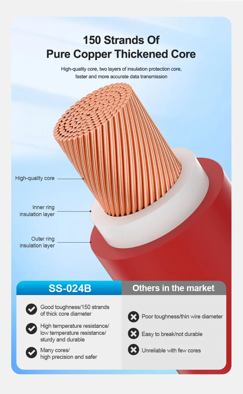 -150 hebras de núcleo engrosado de cobre puro, núcleo de alta calidad, dos capas de núcleo protector de aislamiento, transmisión de datos más rápida y precisa