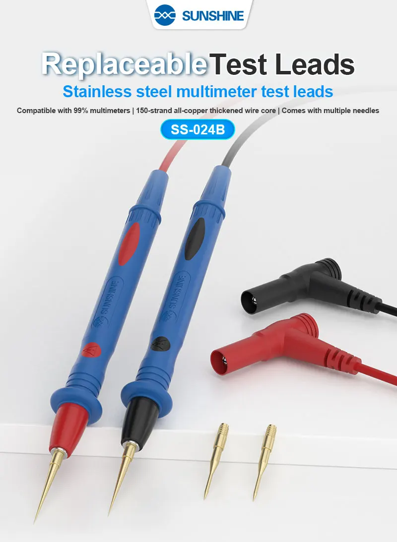 SUNSHINE SS-024B 1000V 20A Cable de prueba de sonda de acero inoxidable con aguja reemplazable para multímetro herramienta de prueba Universal