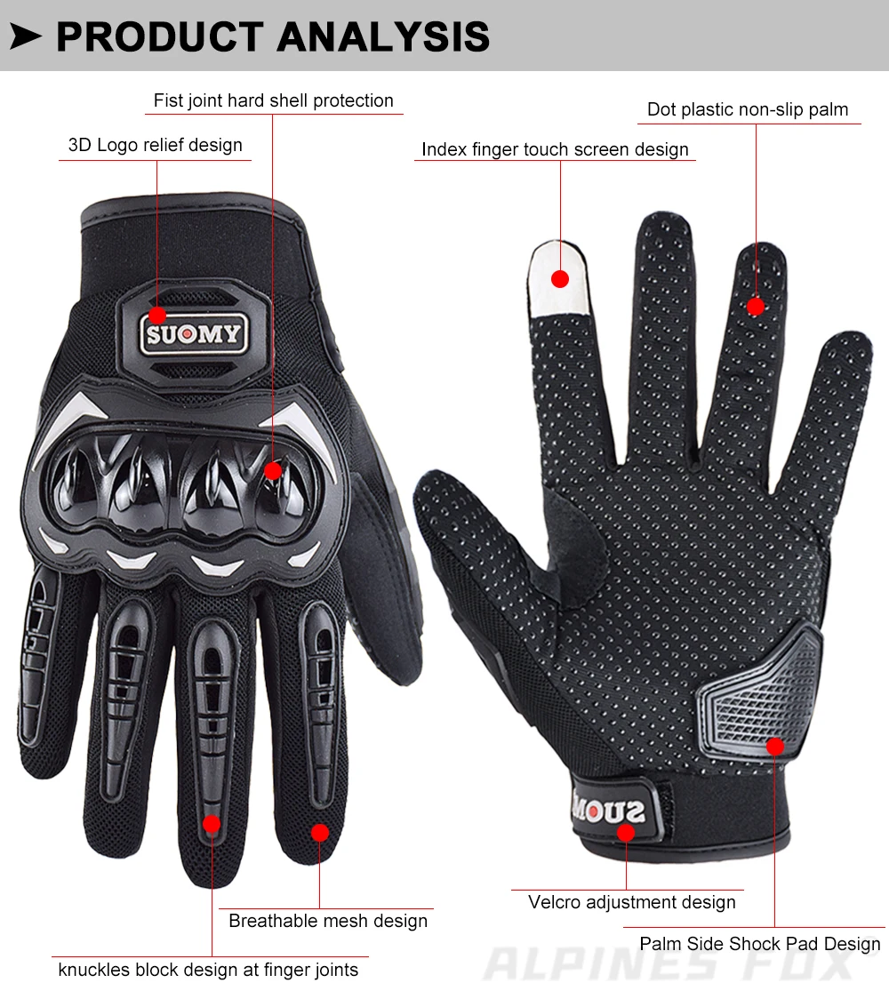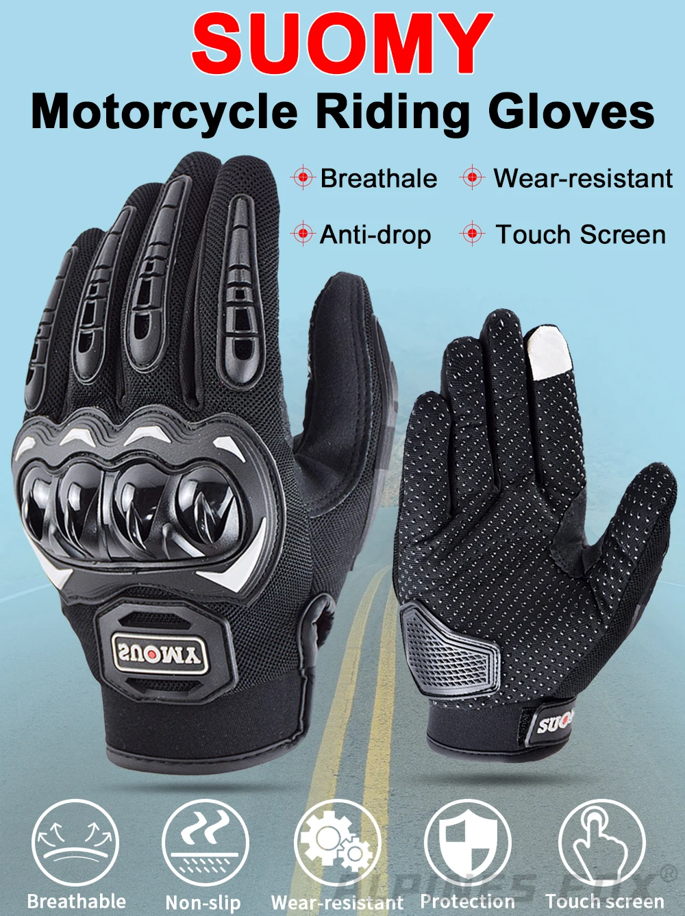 Suomy verano motocicleta Guantes transpirable full Finger moto Riding guante mujeres hombres pantalla táctil motocross guantes