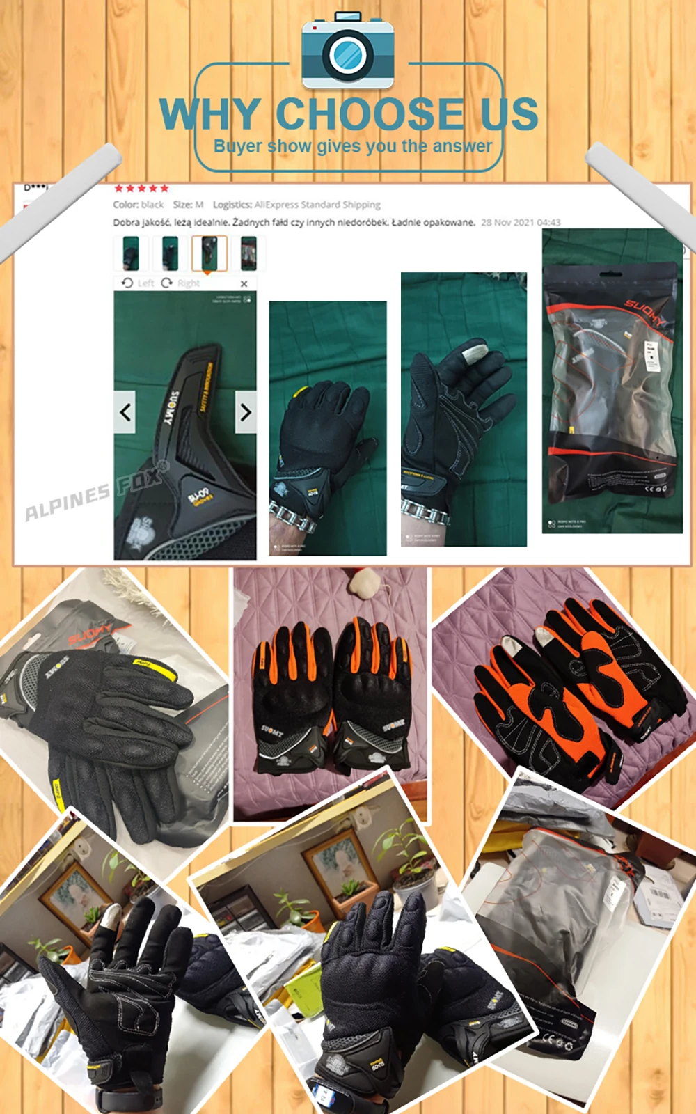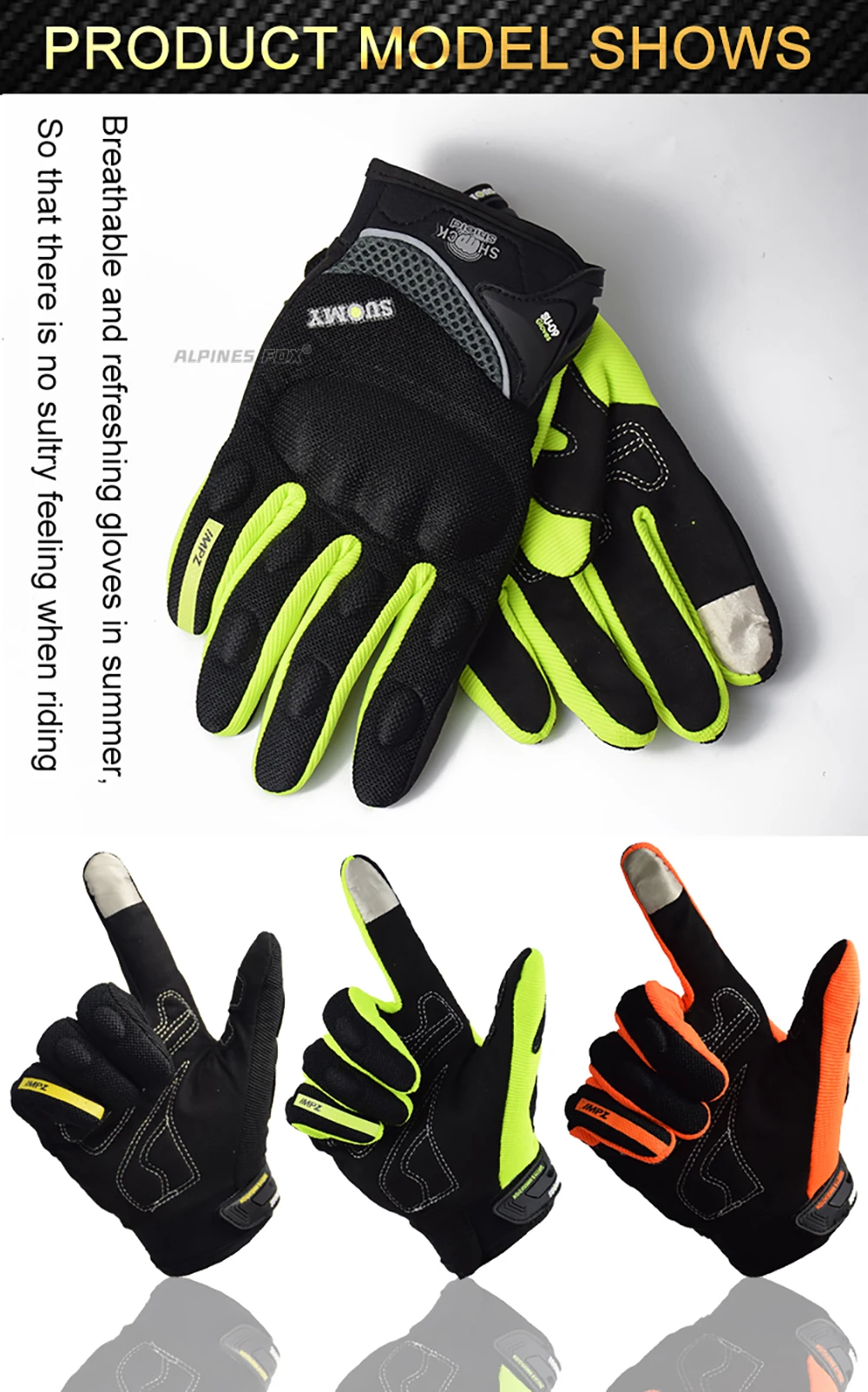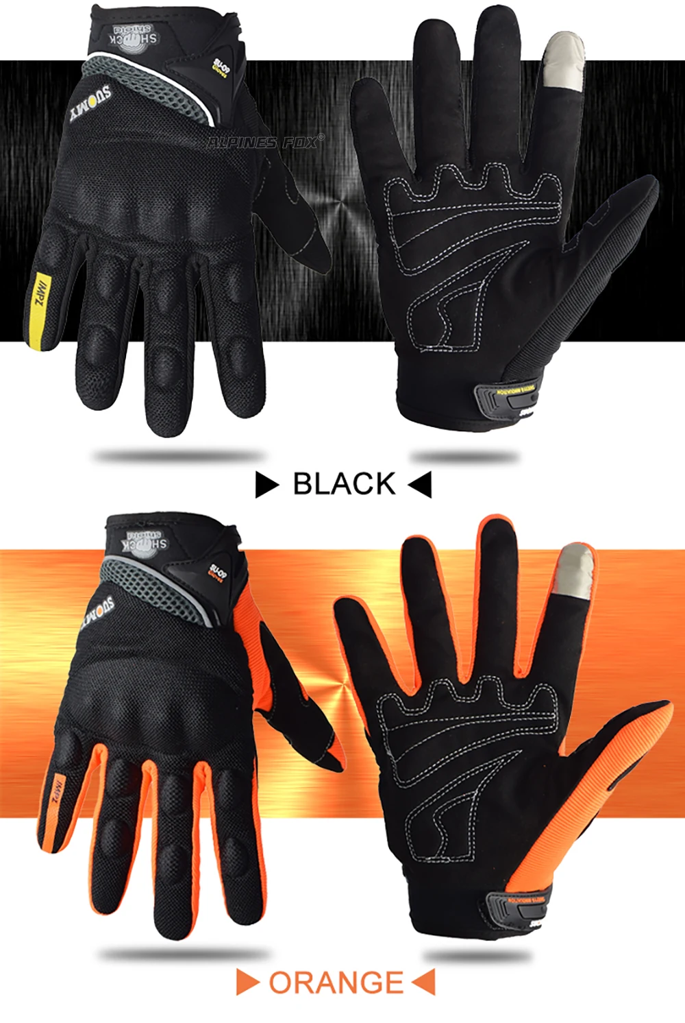 Comprar SUOMY-guantes transpirables de dedo completo para motocicleta, manoplas antideslizantes de calidad, decoradas con estilo, talla S-XXL, color negro