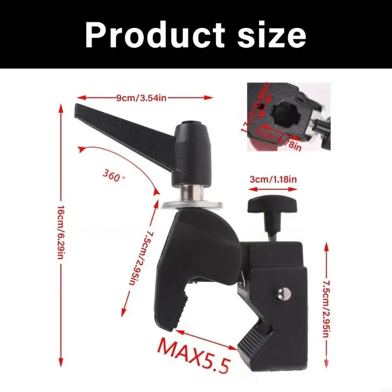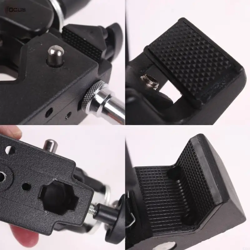 Fabricada con un diseño de mezcla de metal y plástico duradero, esta abrazadera para equipo de fotografía combina portabilidad liviana con una construcción robusta para mejorar la capacidad de carga y el rendimiento duradero.
