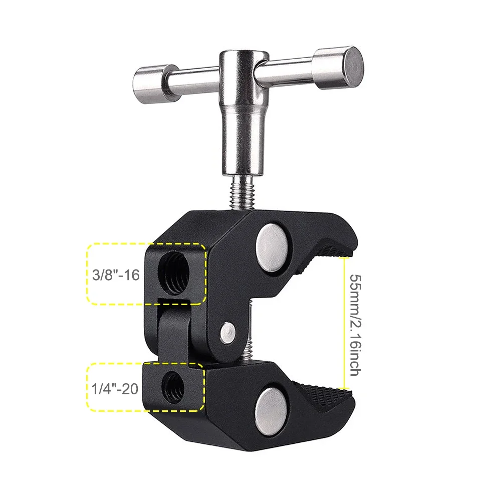 Super abrazadera de fotografía con clip de rosca de 1/4 ''y 3/8'' para cámaras DSLR, soporte de luz, varillas, luces, ganchos, estantes, barras transversales