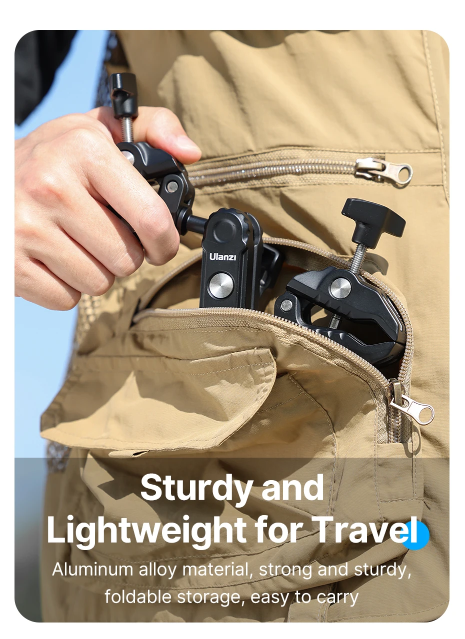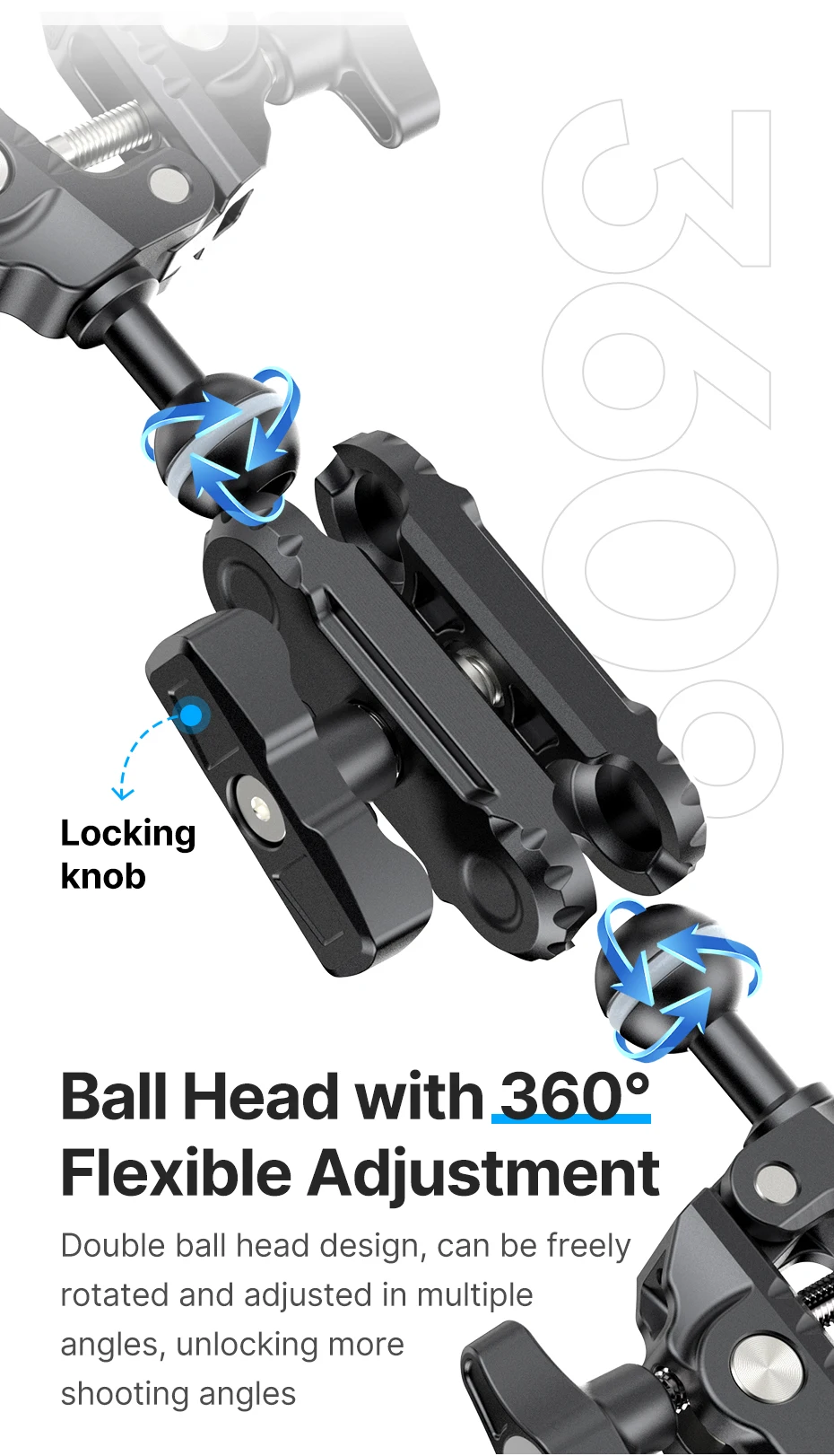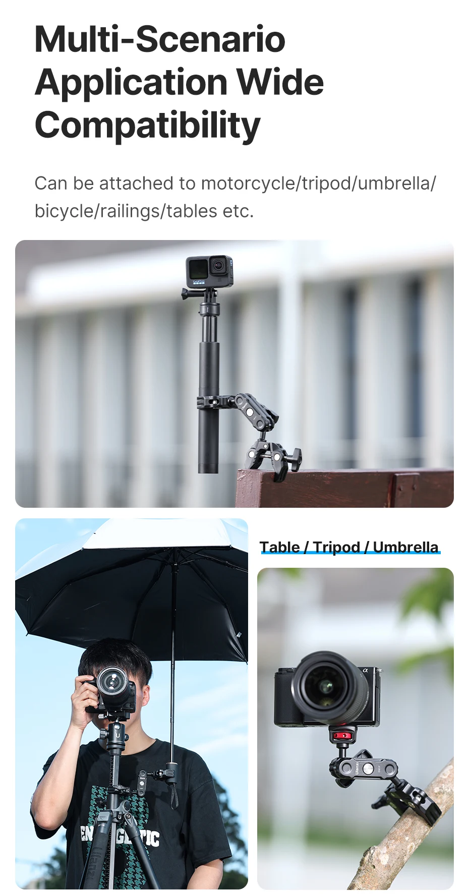 Súper abrazadera Ulanzi CO17 con 360 ° Abrazaderas dobles de doble cabezal, adaptador de brazo mágico Arri para cámara de acción, Monitor de paraguas, luz LED