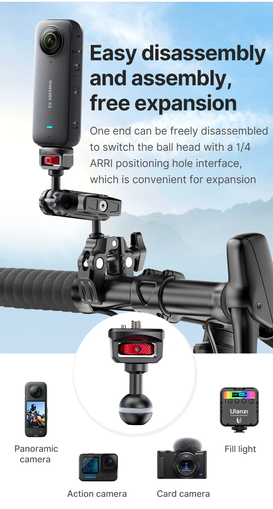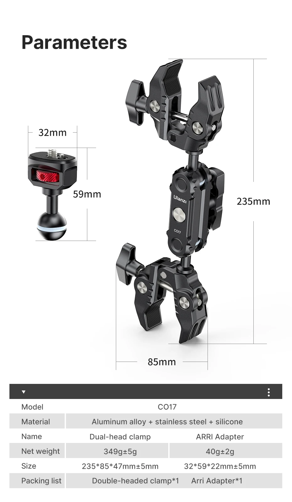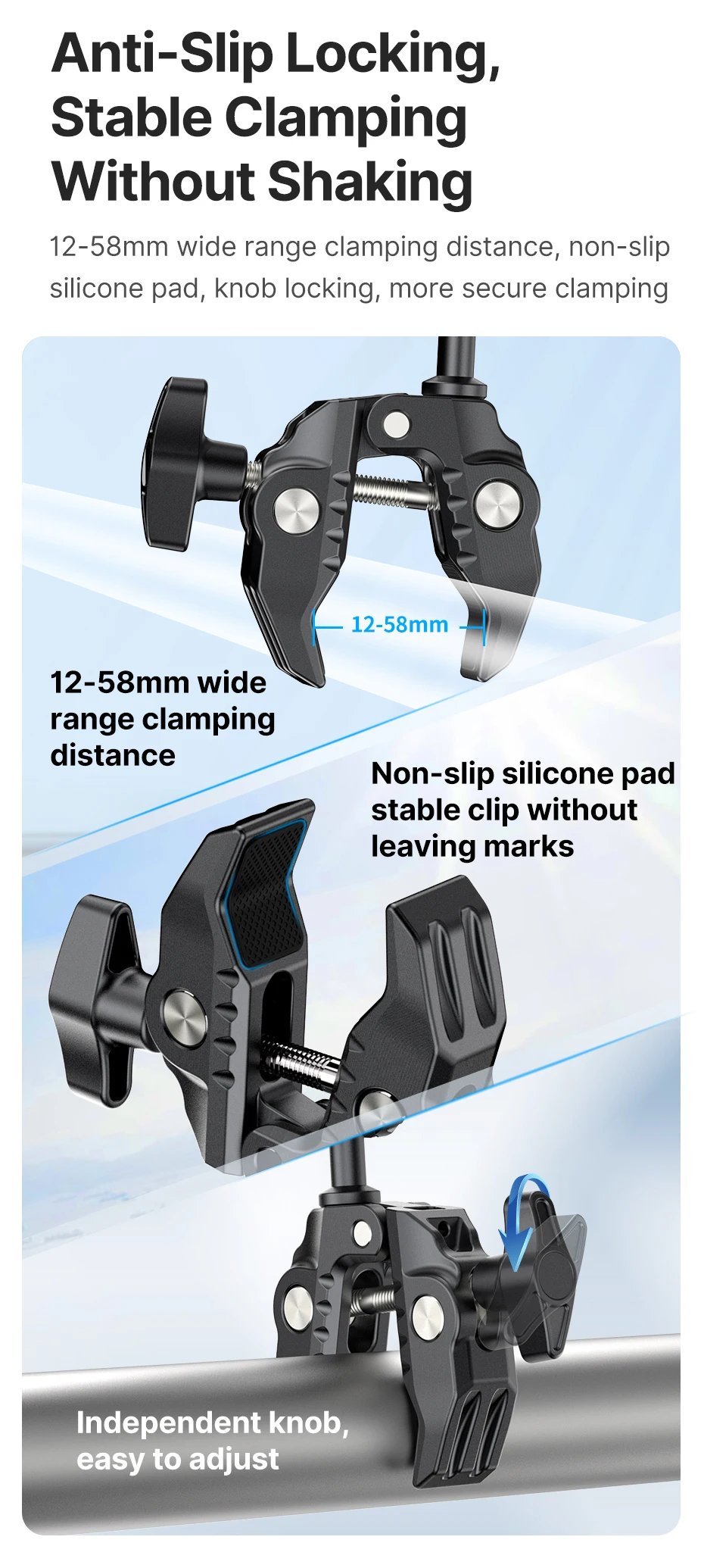 Súper abrazadera Ulanzi CO17 con 360 ° Abrazaderas dobles de doble cabezal, adaptador de brazo mágico Arri para cámara de acción, Monitor de paraguas, luz LED