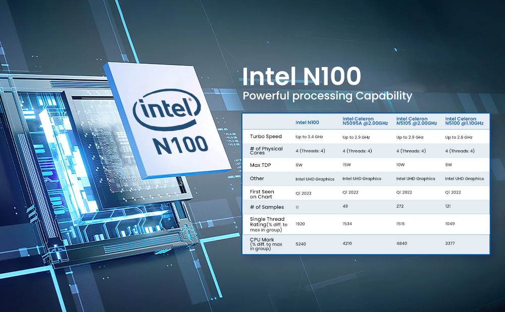 4.Intel incorporado® Procesador Alder Lake-N N100, velocidad de funcionamiento aumentada en al menos un 20%.