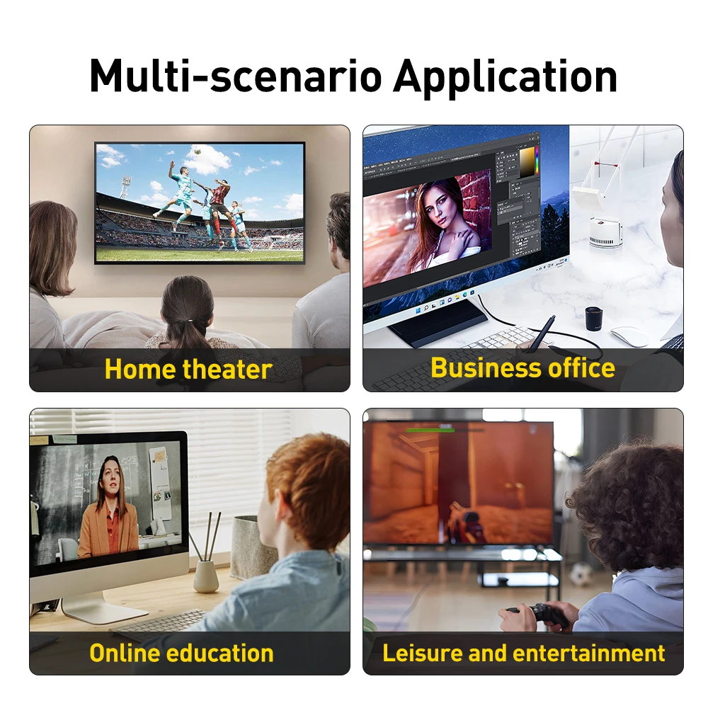 Admite pantalla 4K de doble pantalla (1X HD2.0+1X DP), perfecto para el trabajo y el entretenimiento.