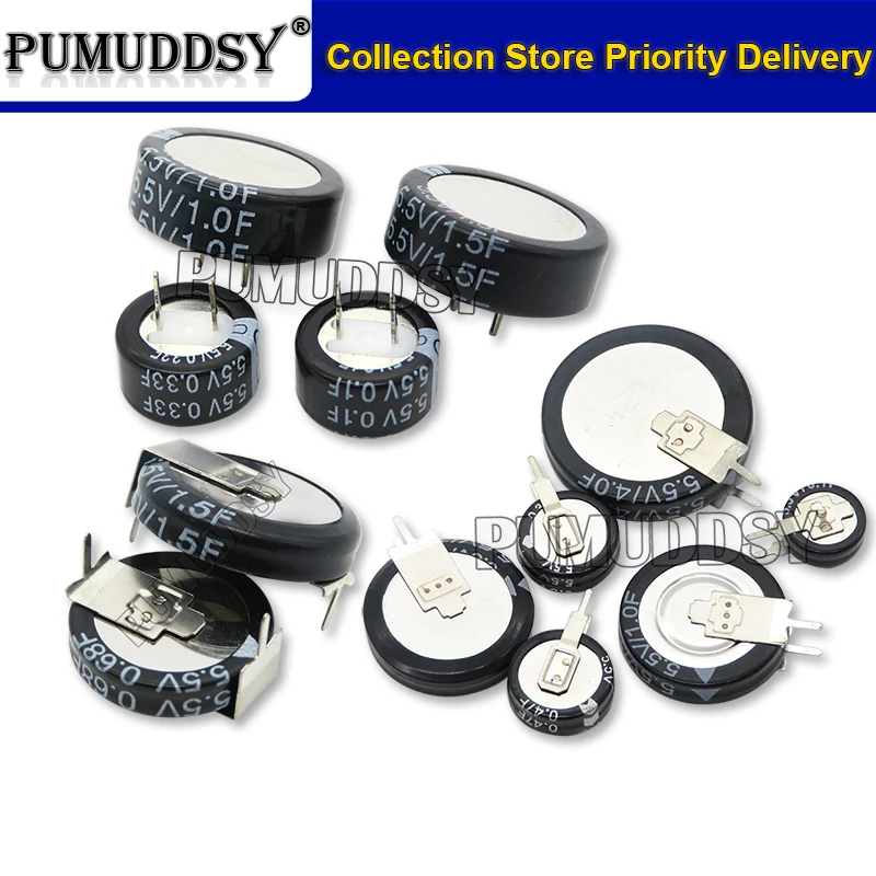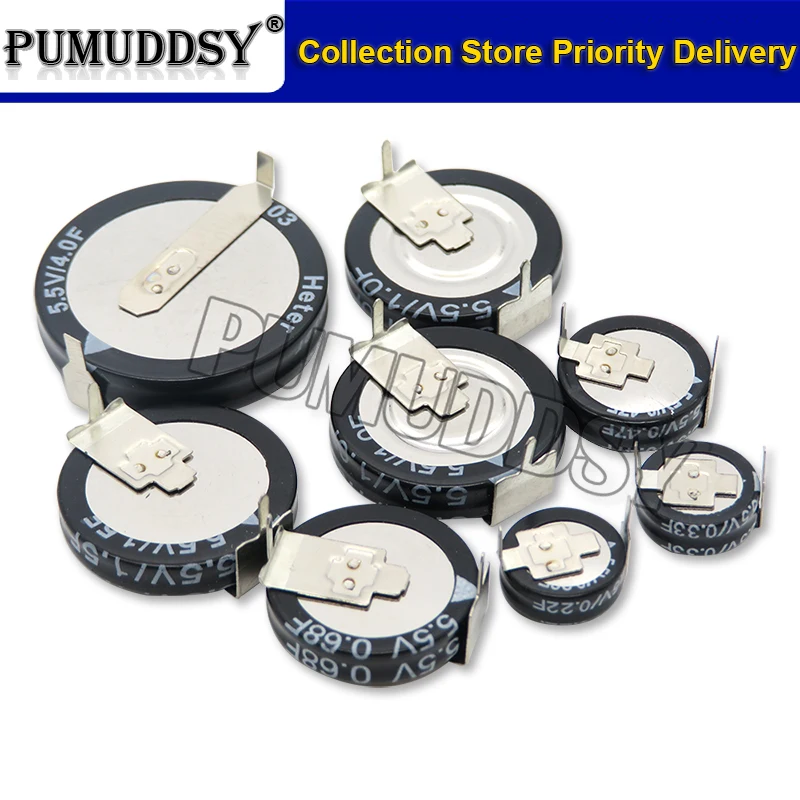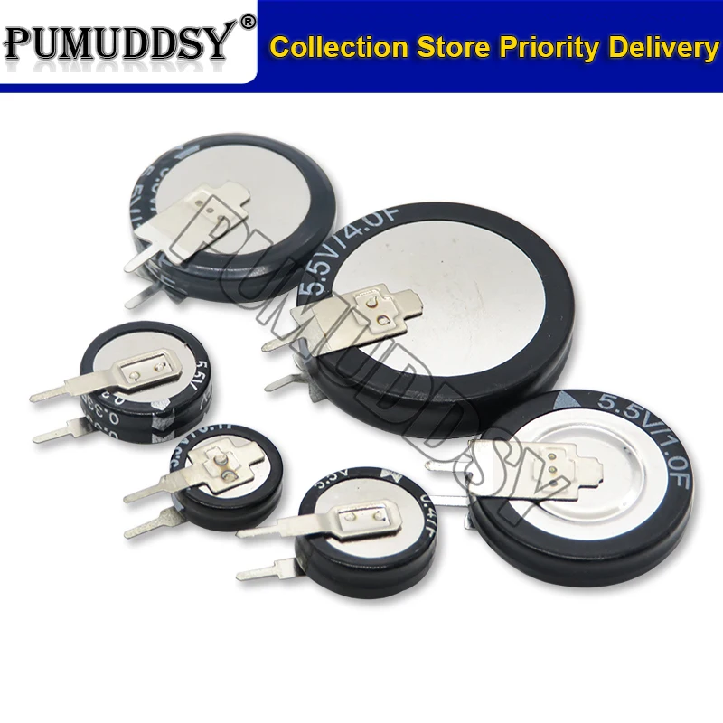 Supercondensador de Farad de botón tipo C, 5,5 V, 0,1f, 0,22f, 0,33f, 0,47f, 1F, 1,5f, 4,0f