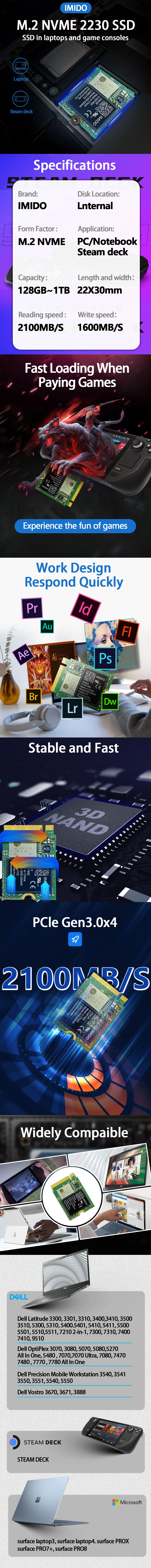 Comprar Superficie de cubierta de vapor SSD de 2230 M.2, CL1-3D, 2TB, M2, NVMe, PCIE, reemplaza BG4, SN530, 520, PM991, PM971, BC711