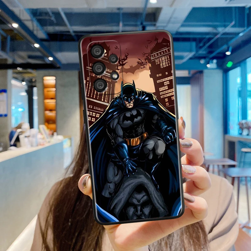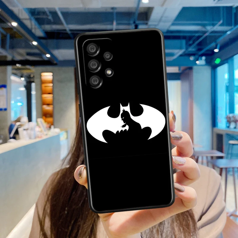 Superhéroe negro Batman para Samsung A55 A35 A25 A15 A14 A73 A53 A13 A05S A03S A02S A71 A52 A32 funda de teléfono suave negra