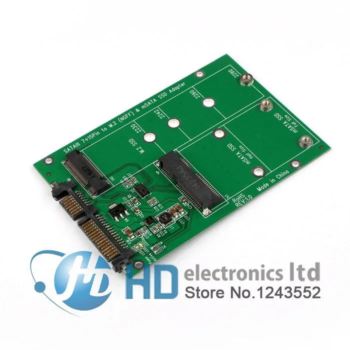 Adaptador superior 2 en 1 Mini PCI-E de 2 carriles M.2 y mSATA SSD a SATA III de 7 + 15 pines