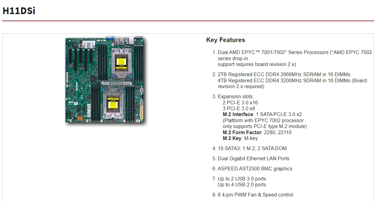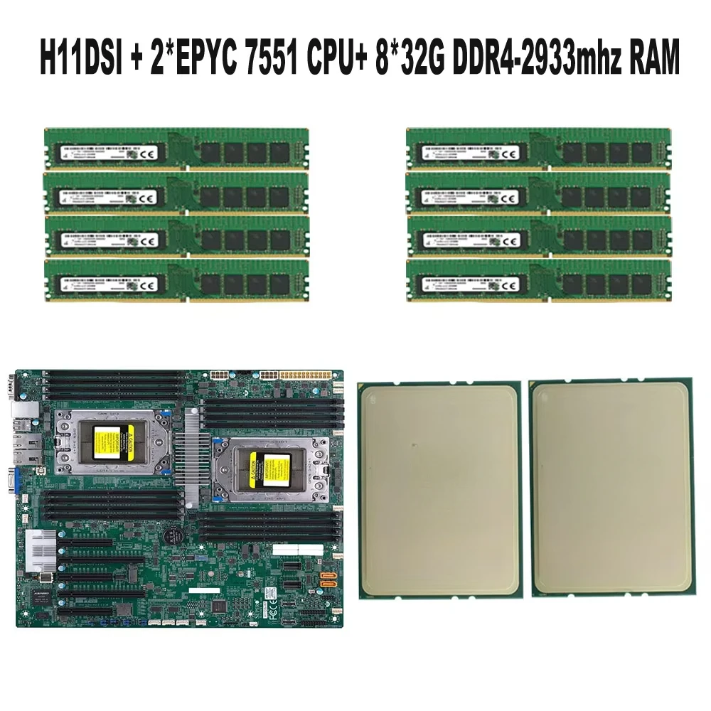 Comprar Para Supermicro H11DSI REV2.0 placa base Socket SP3 / 2 * EPYC 7551 32C/64T 180W procesador de CPU/8*32GB = 256GB DDR4 2933mhz