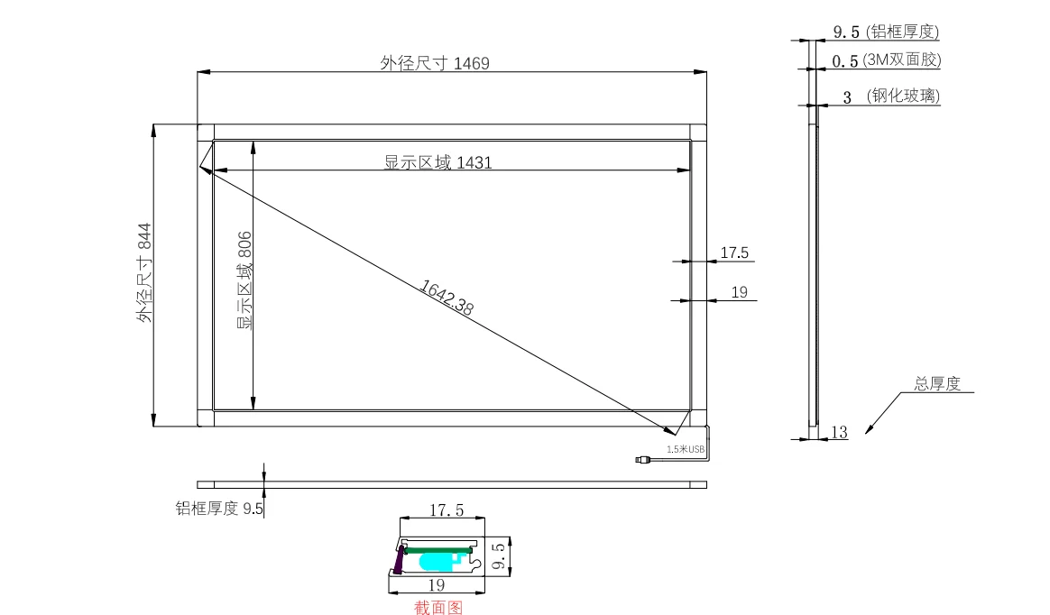 65 pulgadas 10 puntos IR multi pantalla táctil dimensiones del producto dibujo:
