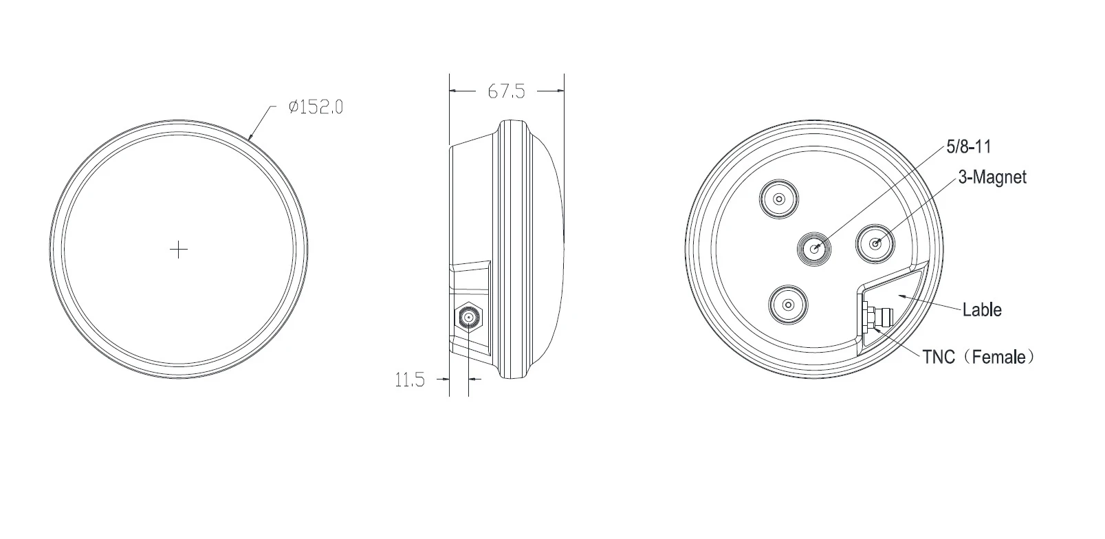 Dimensión: Φ152 mm * 67,5 mm