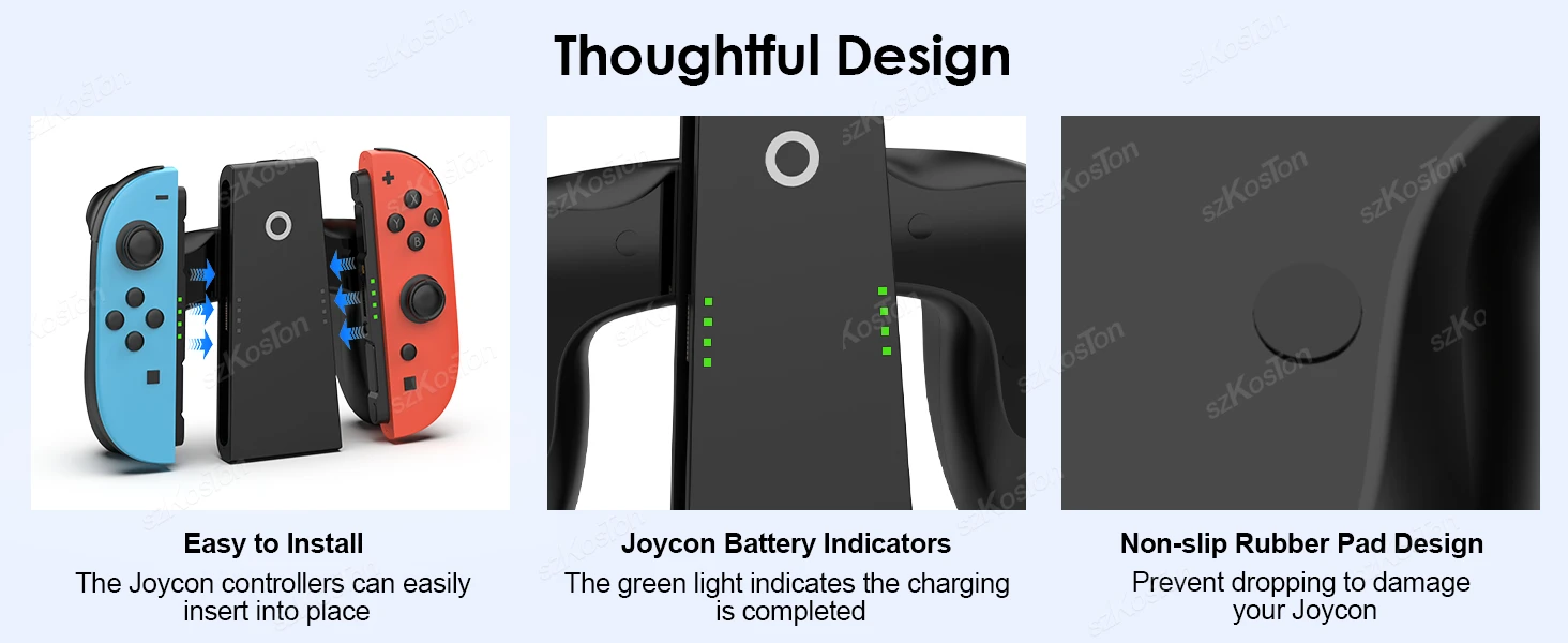 Protección de seguridad inteligente: cuando la empuñadura de carga está completamente cargada en el controlador, la empuñadura cortará automáticamente la carga después de aproximadamente 30 segundos. Incluso si el controlador se carga toda la noche, no hay problema. La protección de control de circuito puede proteger con precisión contra voltaje de sobrecarga, voltaje de sobredescarga, sobrecorriente de carga, cortocircuito y sobrecalentamiento, garantizando su seguridad y la de su controlador.