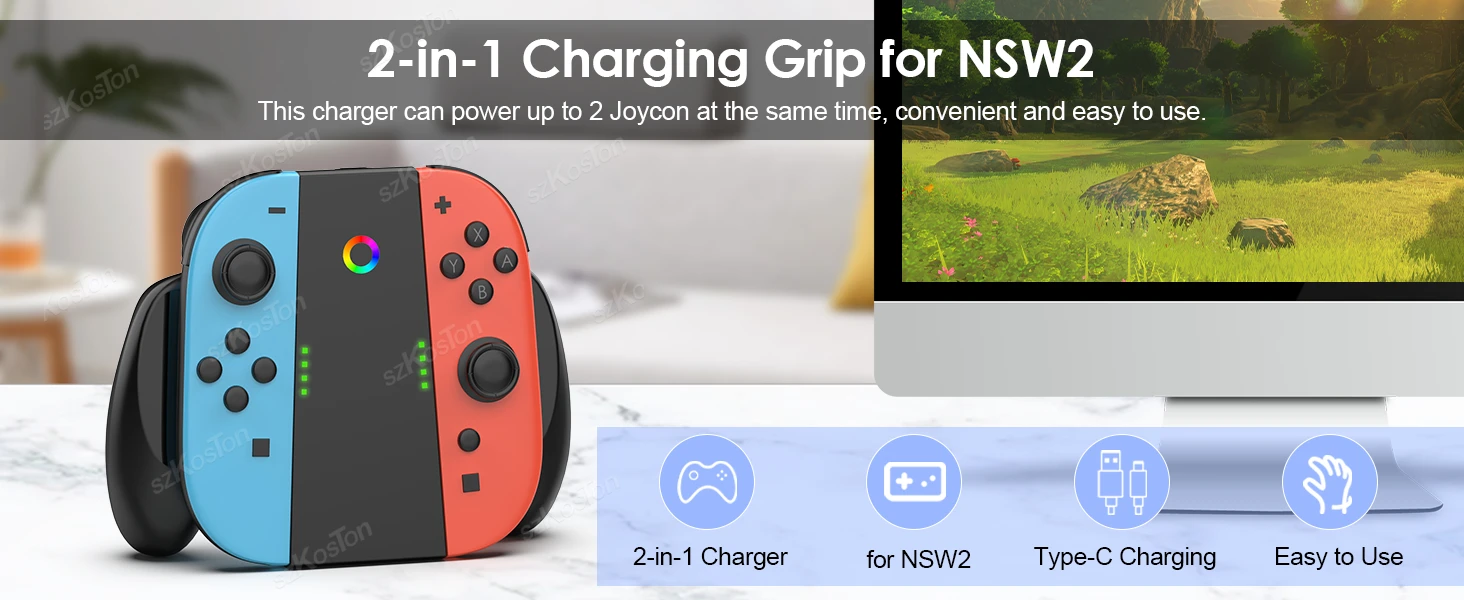 Para el NUEVO Switch 2 Comfort Grip de 2025: el nuevo agarre de carga combina los controladores izquierdo y derecho en un controlador de tamaño completo cómodo y ligeramente más grande para mejorar la unidad y la retroalimentación táctil.Puede jugar mientras se carga y también usar este producto directamente como joystick cuando no necesita cargarlo, protegiendo su consola del desgaste excesivo.Excelente tacto, liviano y fácil de transportar, perfecto para los entusiastas de los juegos que aman los interruptores en movimiento.