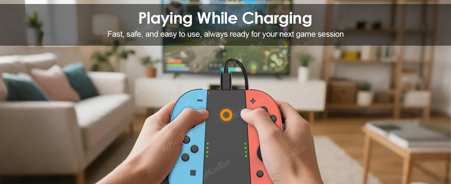 Carga magnética, reproducir mientras se carga: alinee el controlador con los lados izquierdo y derecho de la interfaz del mango, cerca de una cierta distancia, la instalación de adsorción automática de succión magnética, encaje en su lugar para comenzar a cargar a través del cable USB autoajuste, muy conveniente.El controlador se puede cargar a alta velocidad al mismo tiempo, el tiempo máximo requerido es de solo 2 horas.No es necesario perder un minuto mientras se carga y continúa jugando.Compatible con USB 3.0 puerto o adaptador de carga Switch2 original.