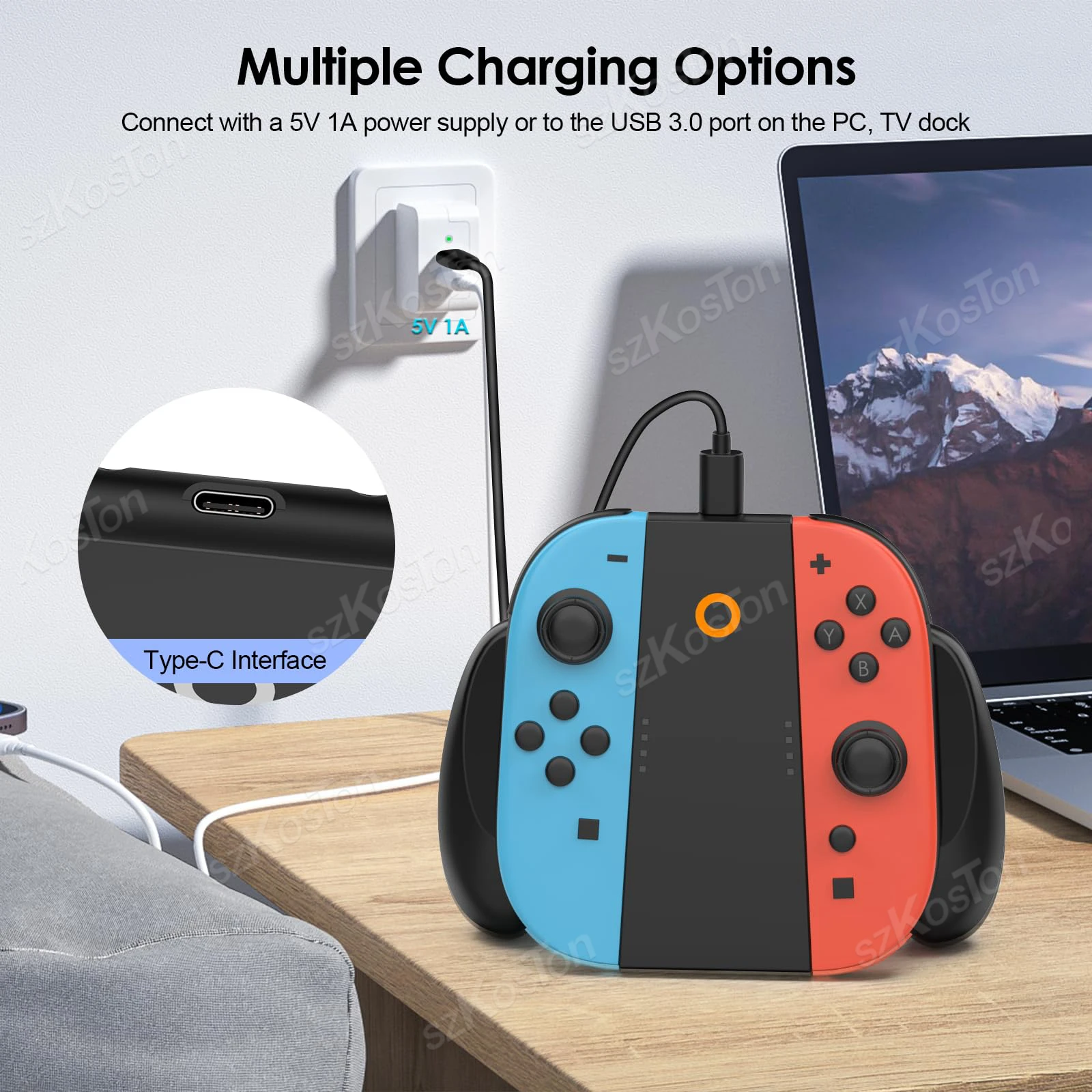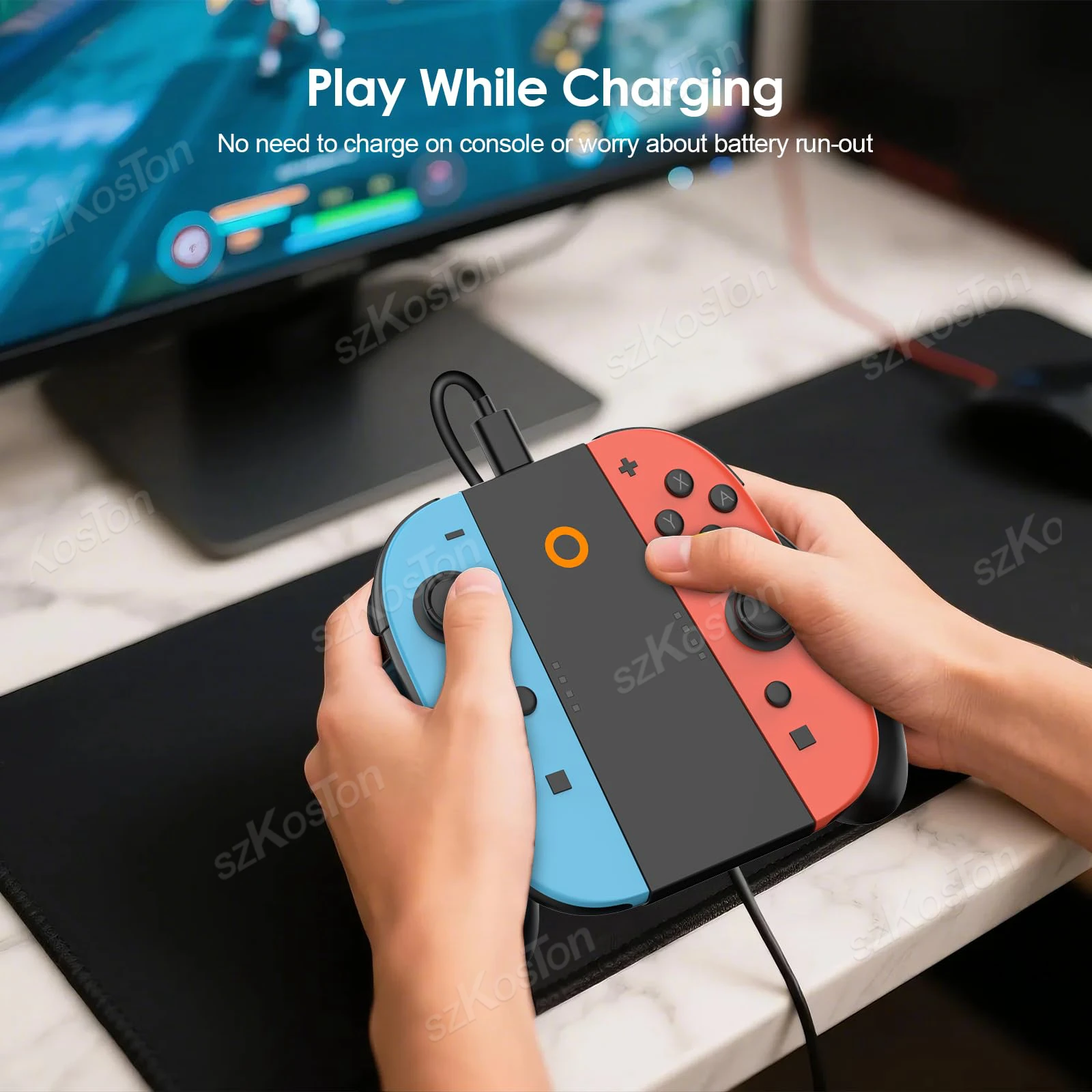 Carga magnética, reproducir mientras se carga: alinee el controlador con los lados izquierdo y derecho de la interfaz del mango, cerca de una cierta distancia, la instalación de adsorción automática de succión magnética, encaje en su lugar para comenzar a cargar a través del cable USB autoajuste, muy conveniente.El controlador se puede cargar a alta velocidad al mismo tiempo, el tiempo máximo requerido es de solo 2 horas.No es necesario perder un minuto mientras se carga y continúa jugando.Compatible con USB 3.0 puerto o adaptador de carga Switch2 original.
